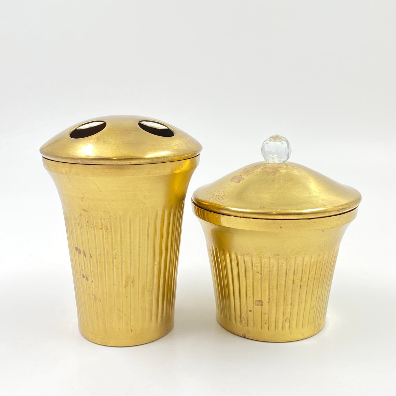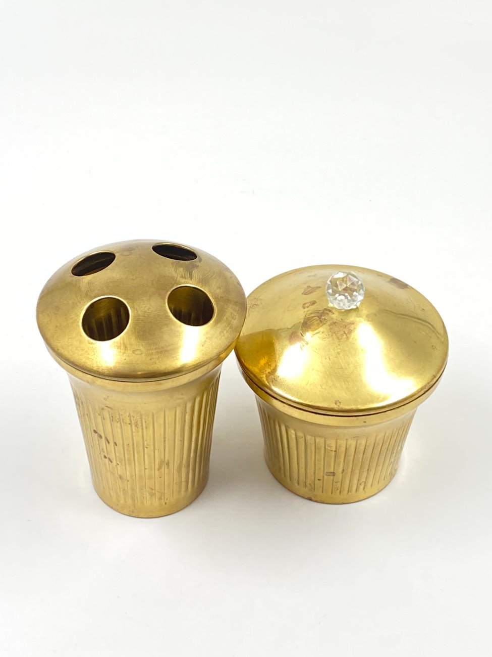 Sendinto žalvario indo dantų šepetėliams 8,5×8,5×12 cm ir dėžutės 9,5×9,5×11 cm 2 vnt. komplektas