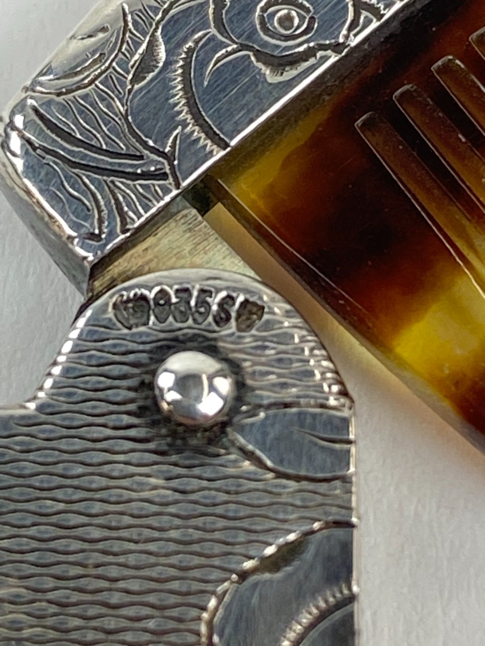 Plastikinės barzdos šukos 835 prabos sidabriniame dėkle.