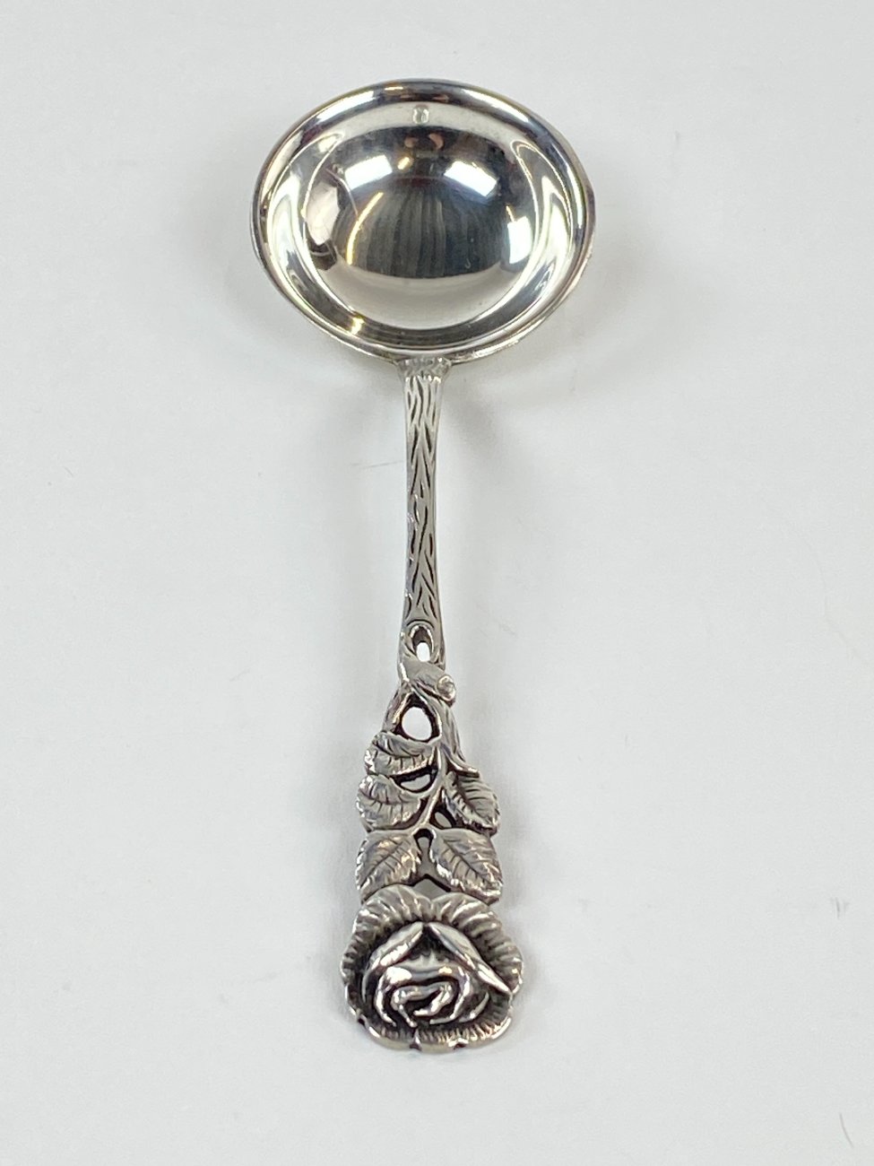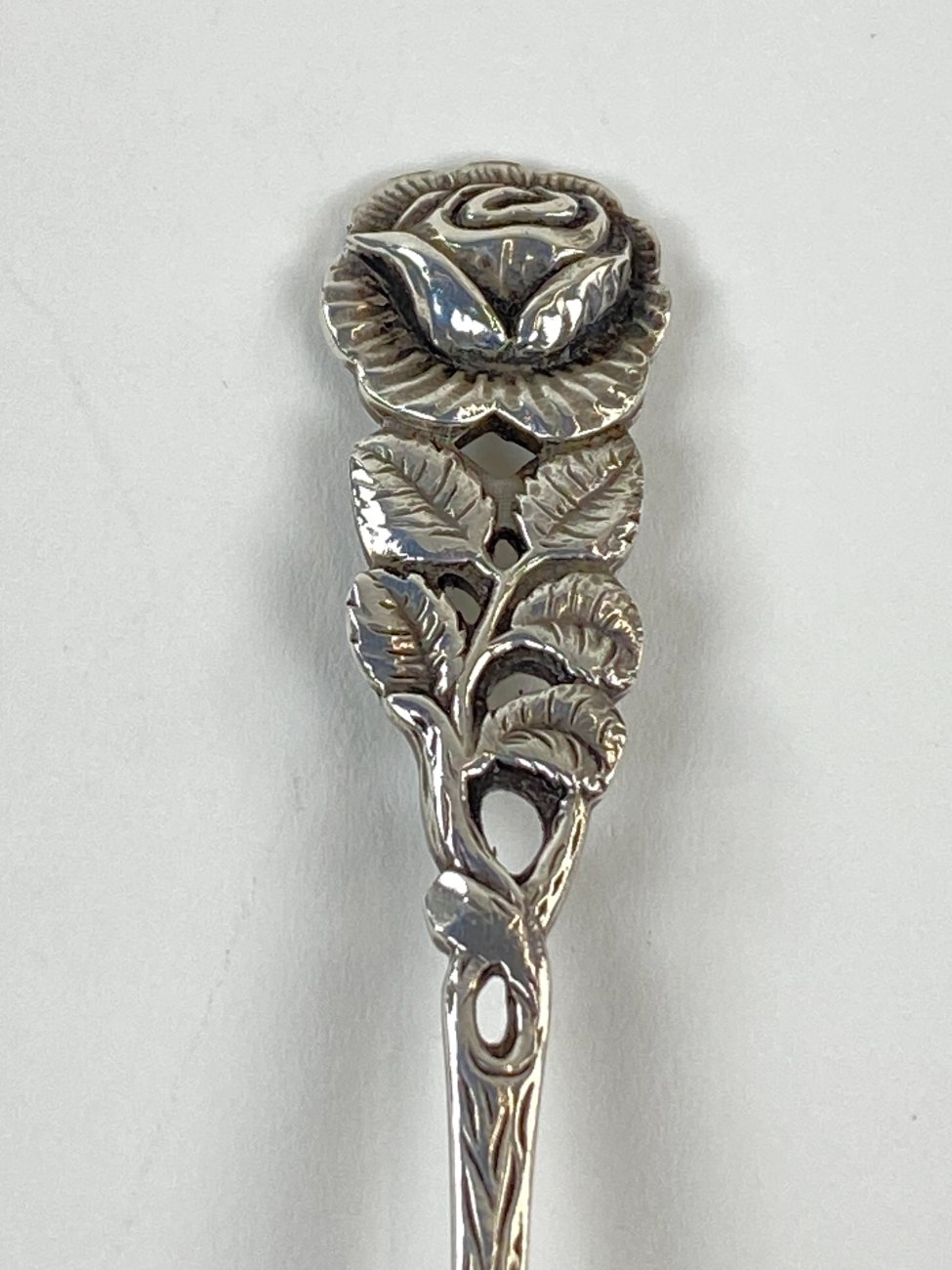 Sidabrinis serviravimo samtelis su rožės atvaizdu, 800 praba.