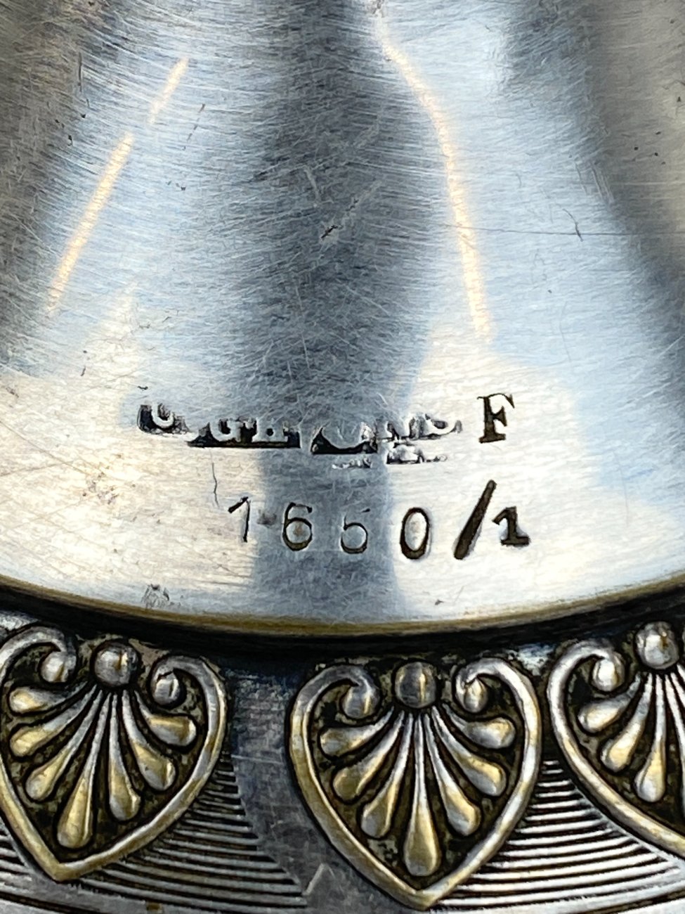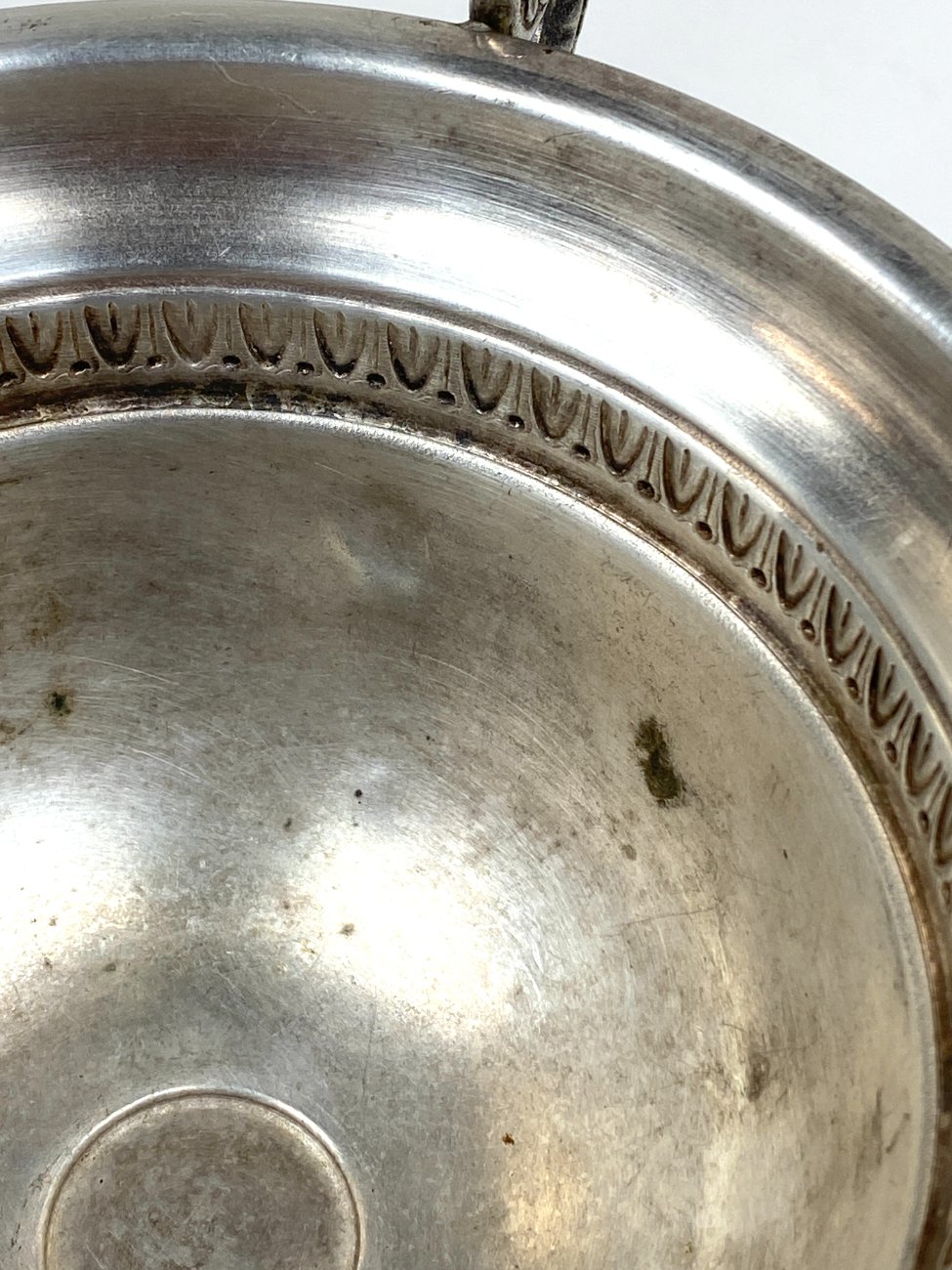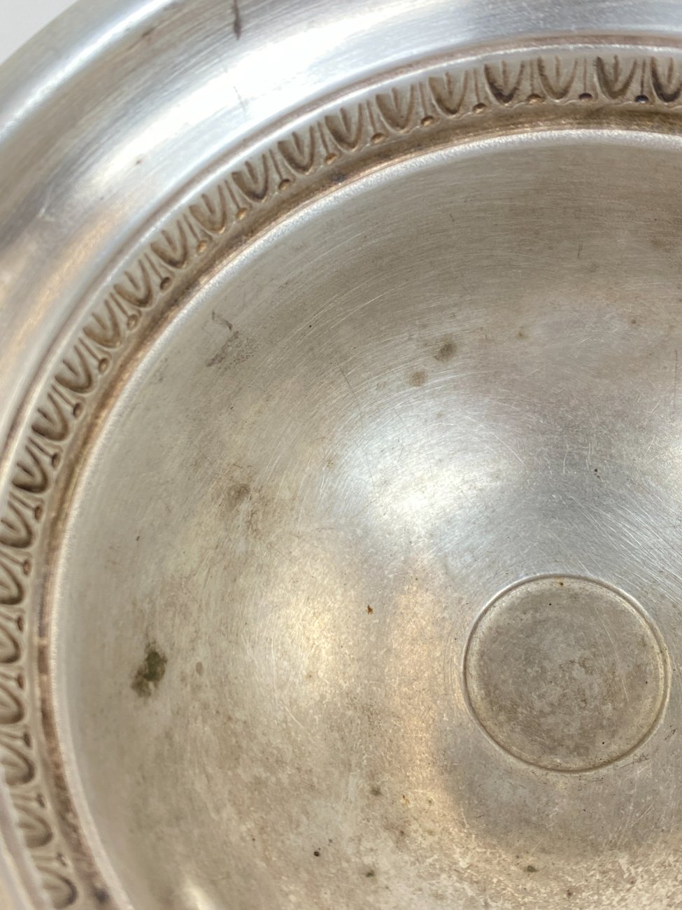 | Papildoma informacija | Vietomis yra įlenkimų, pabraižytas paviršius, yra sidabro dangos oksidacijos dėmių. |