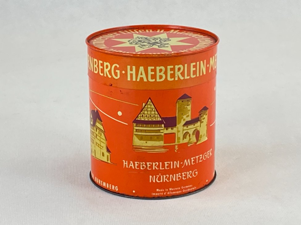 Vintažinė pyrago dėžutė “Haeberlein Metzger”.