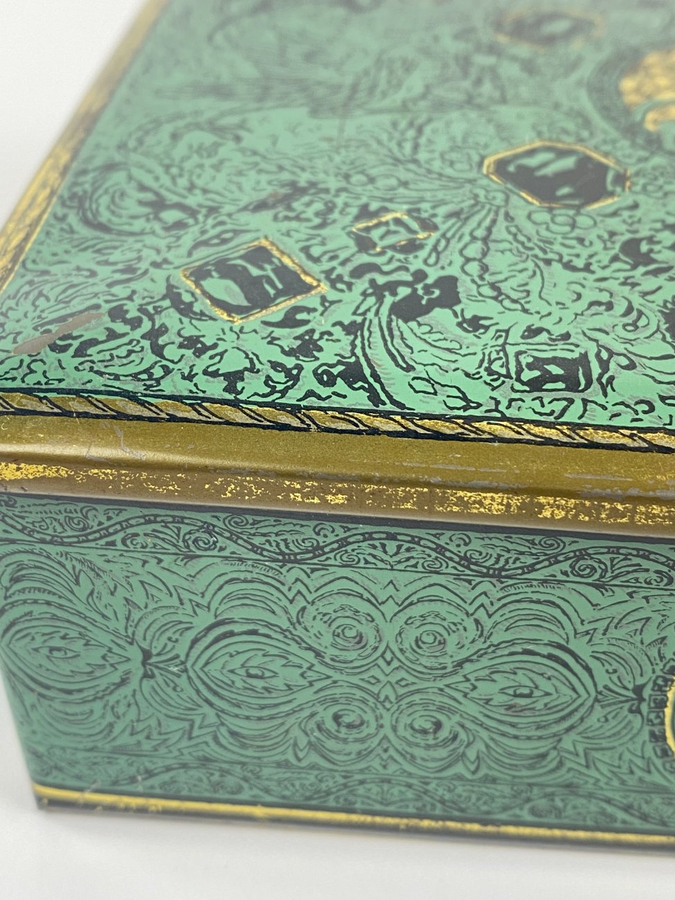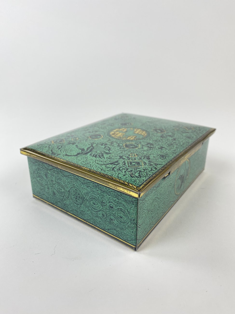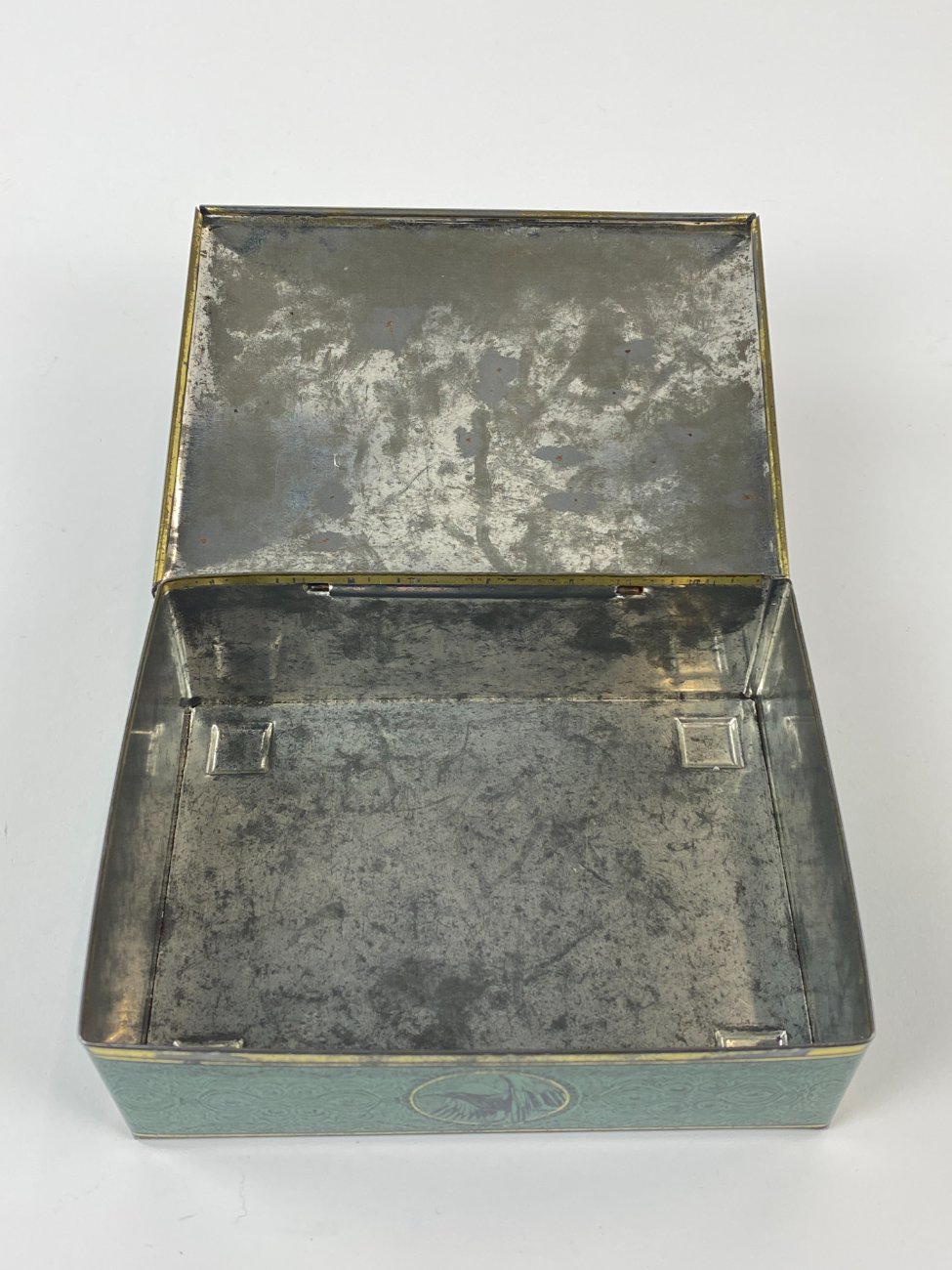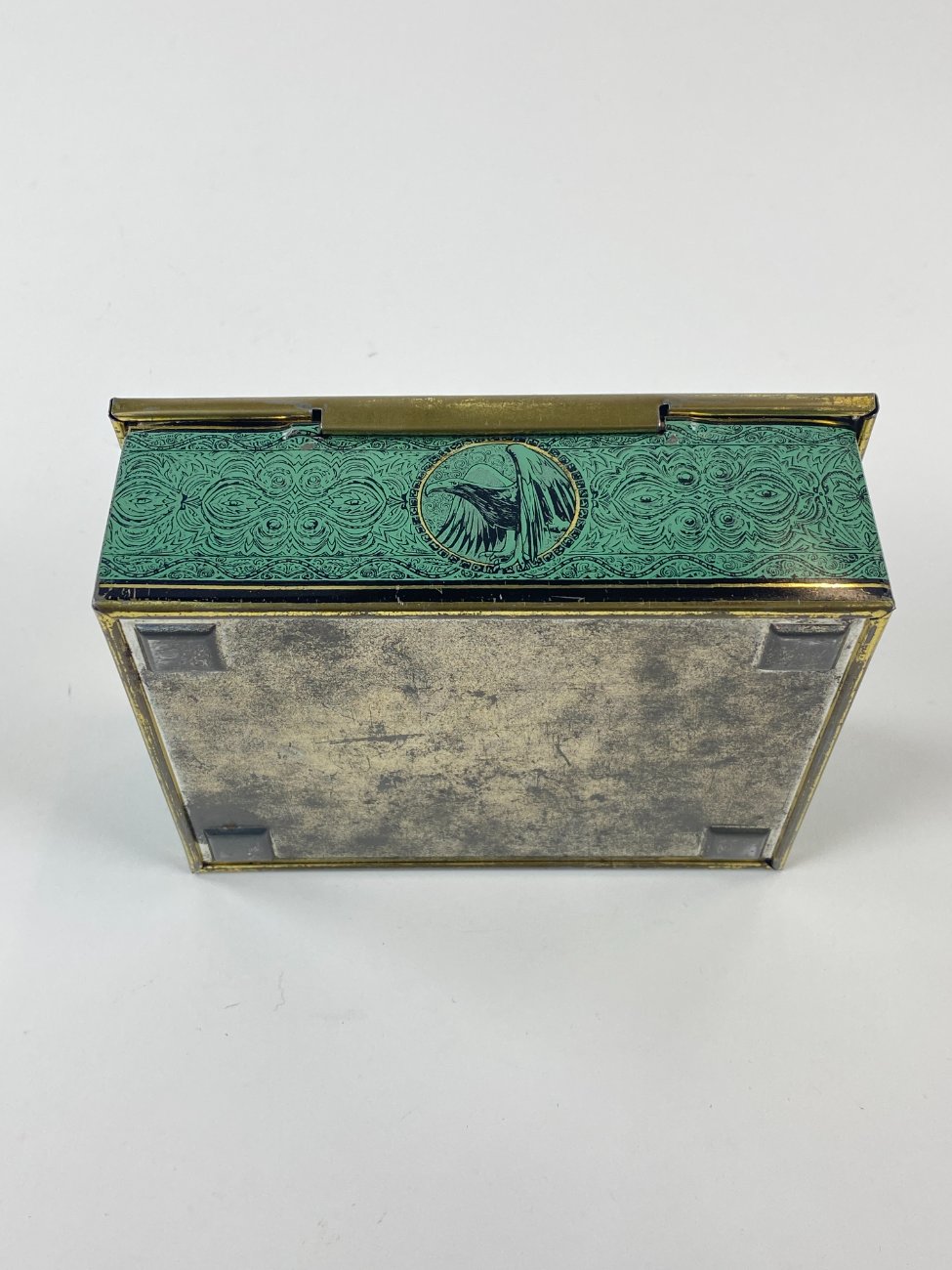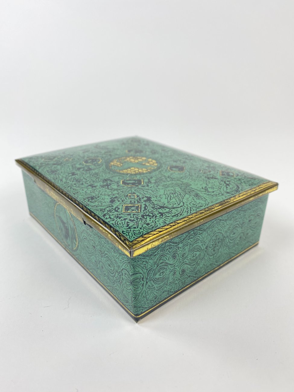Vintažinė skardinė dėžutė su žirgų ir erelių atvaizdais 12,5x16x5,5 cm
