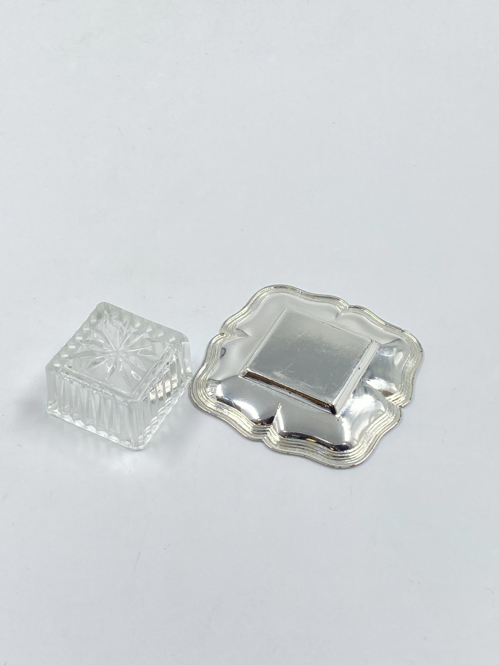 Stiklinis indelis su sidabruoto metalo padėkliuku 8x8x3 cm