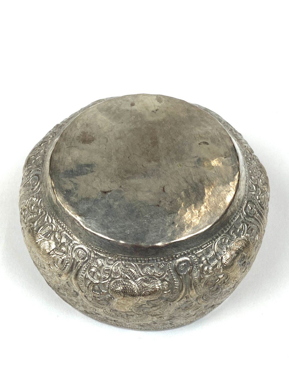 Rytietiškas metalinis bareljefinis indelis su gyvūnų atvaizdais 8x8x4 cm