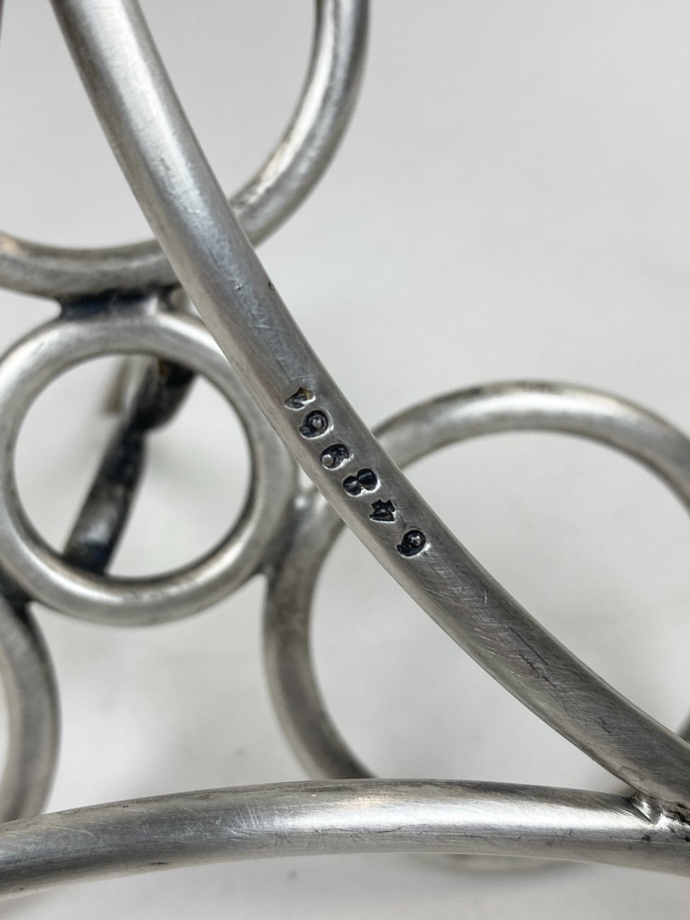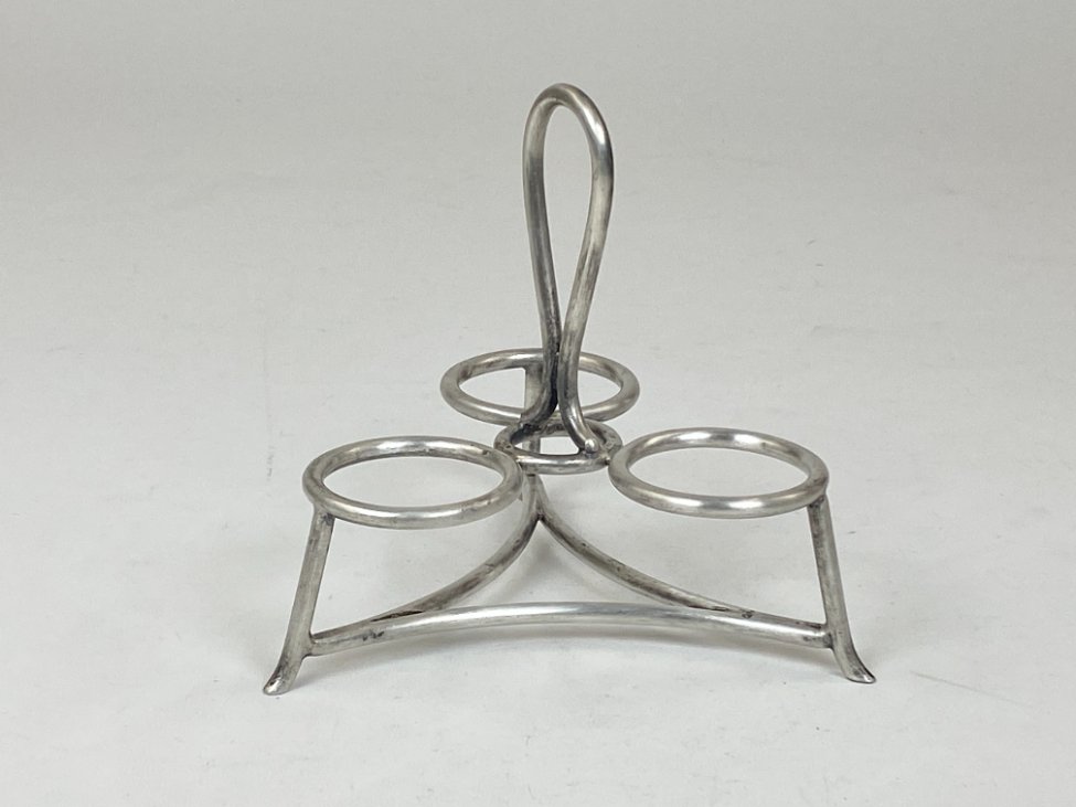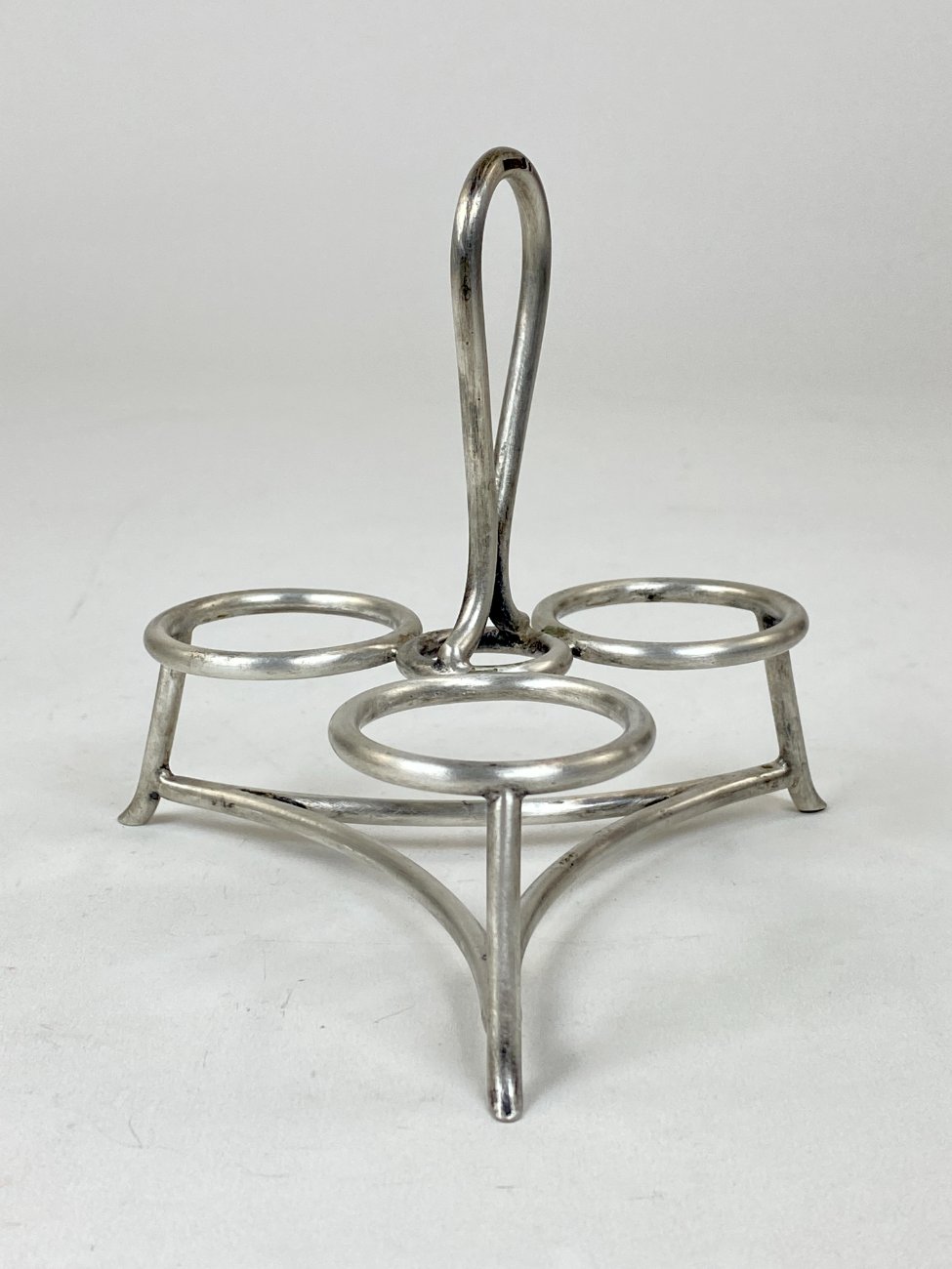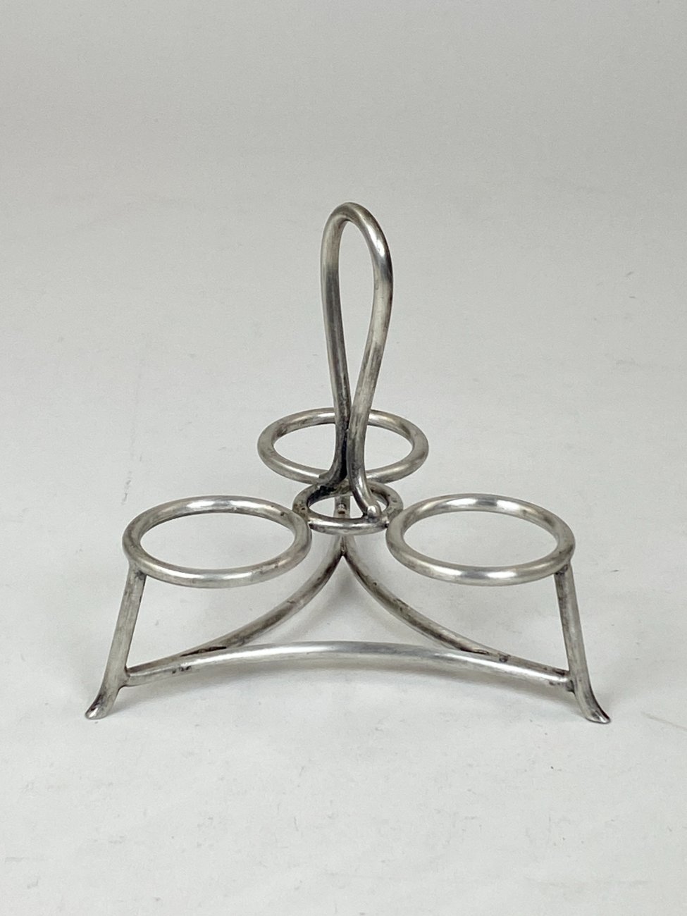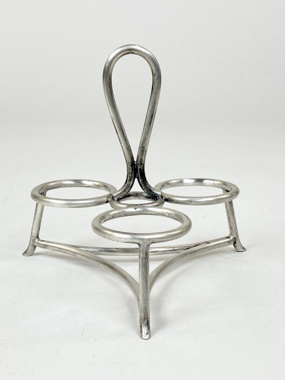 Sidabruoto metalo “Wiskemann” trijų dalių stovas padažams/kiaušiniams.