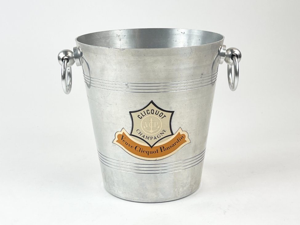 Vintažinė aliuminė Veuve Clicquot šampaninė su rankenėlėmis.