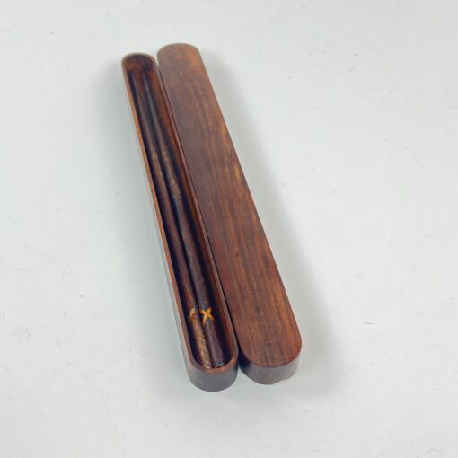 Medinės inkrustuotos valgymo lazdelės su dėžute.