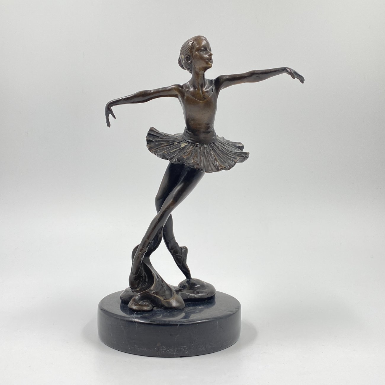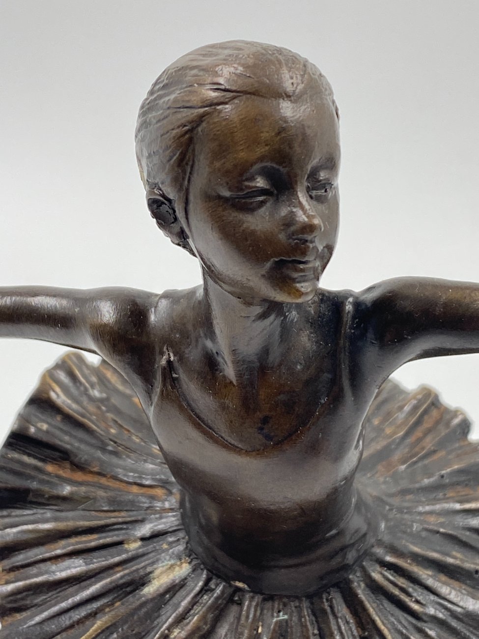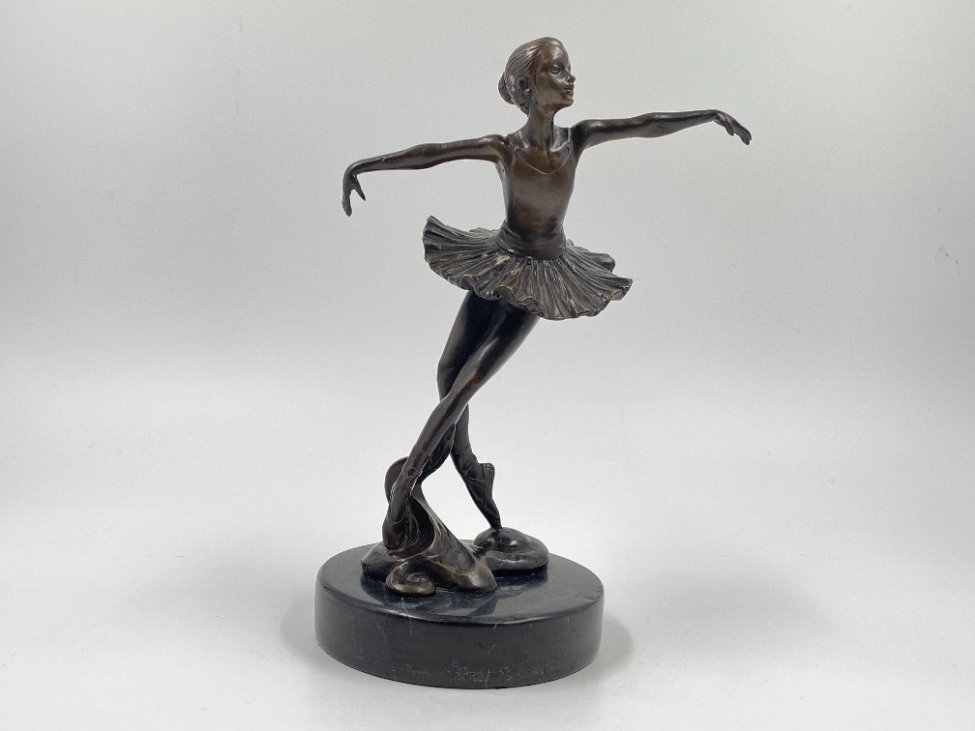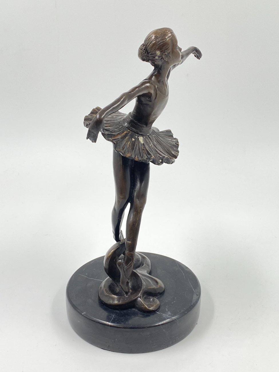 Bronzinė balerinos statula ant akmeninio postamento 13x19x27 cm