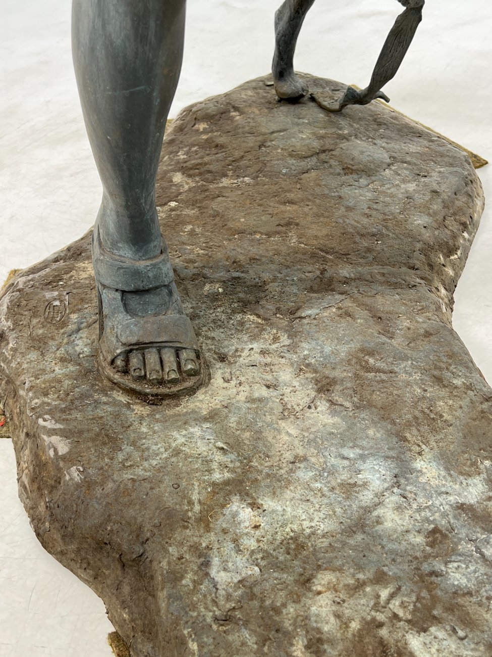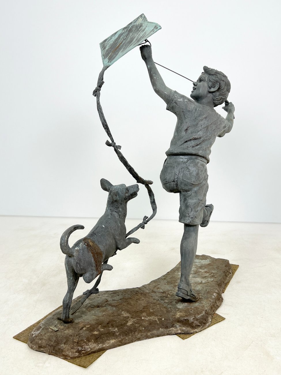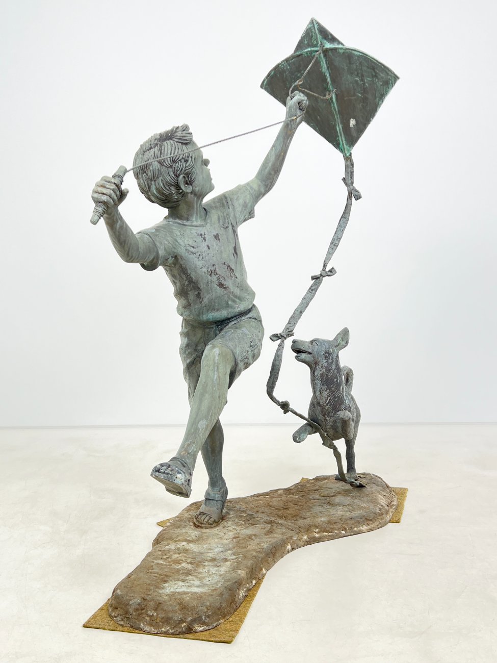 Bronzinė berniuko su aitvaru ir šuniu statula 75x125x142,5 cm