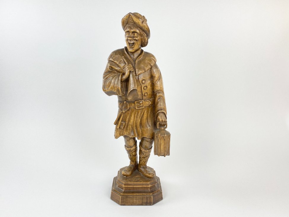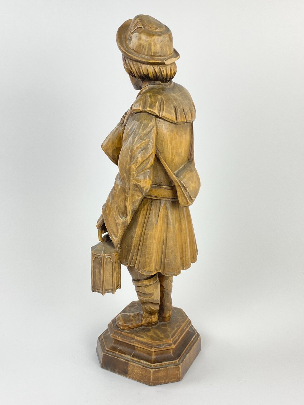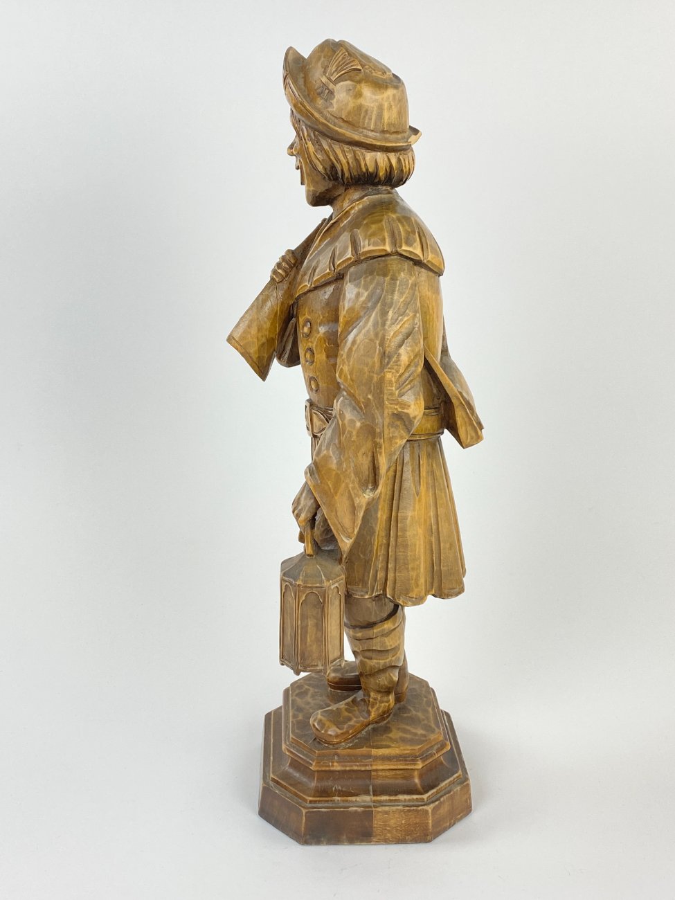 Medinė vyro su ragu ir žibintu statula 16x19x47 cm