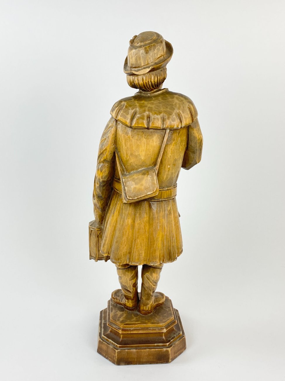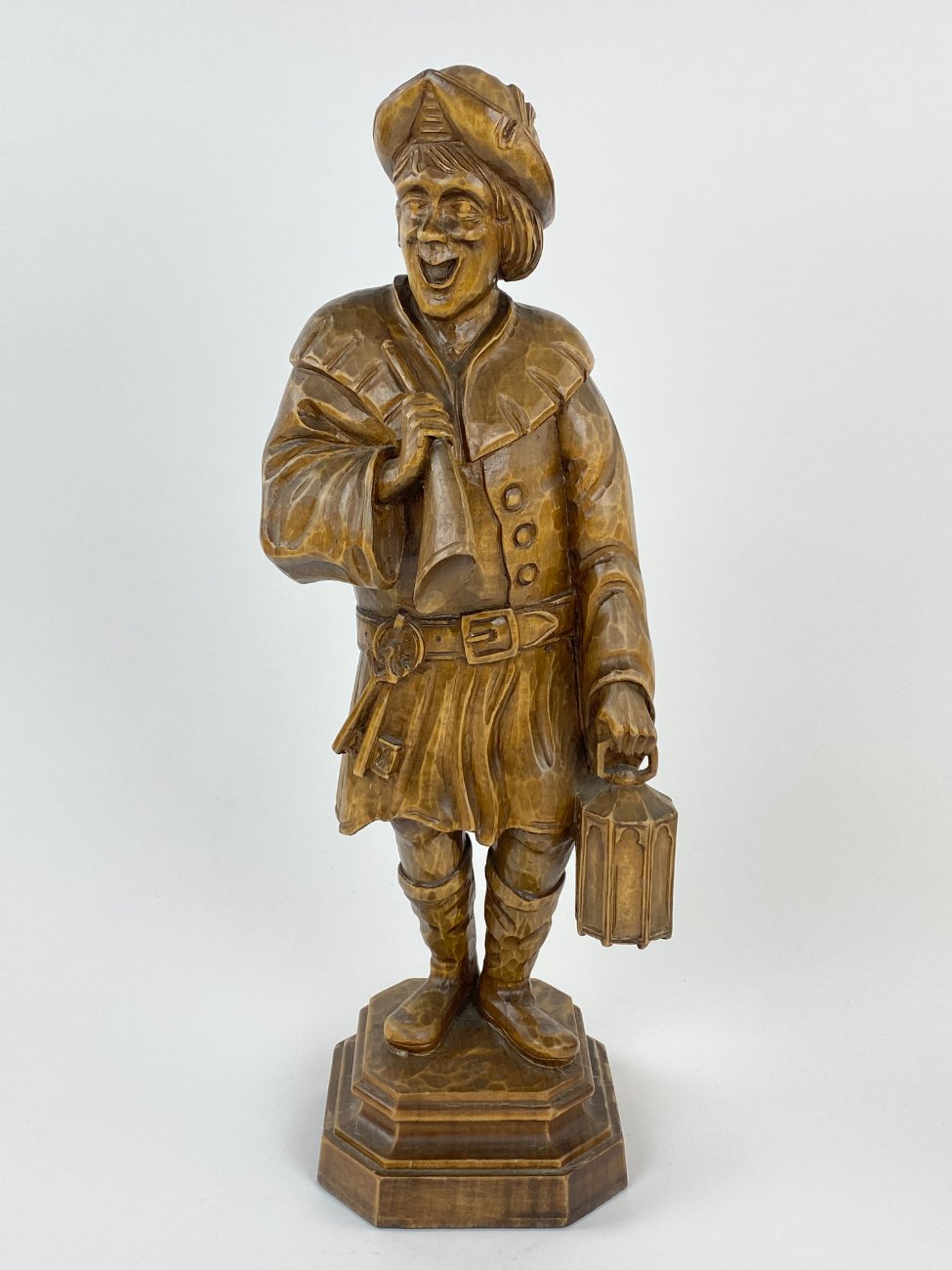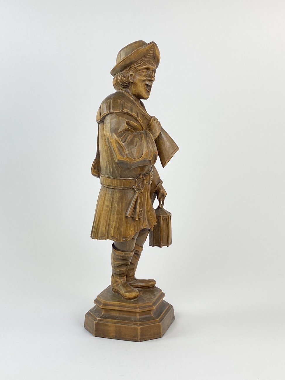 Medinė vyro su ragu ir žibintu statula 16x19x47 cm