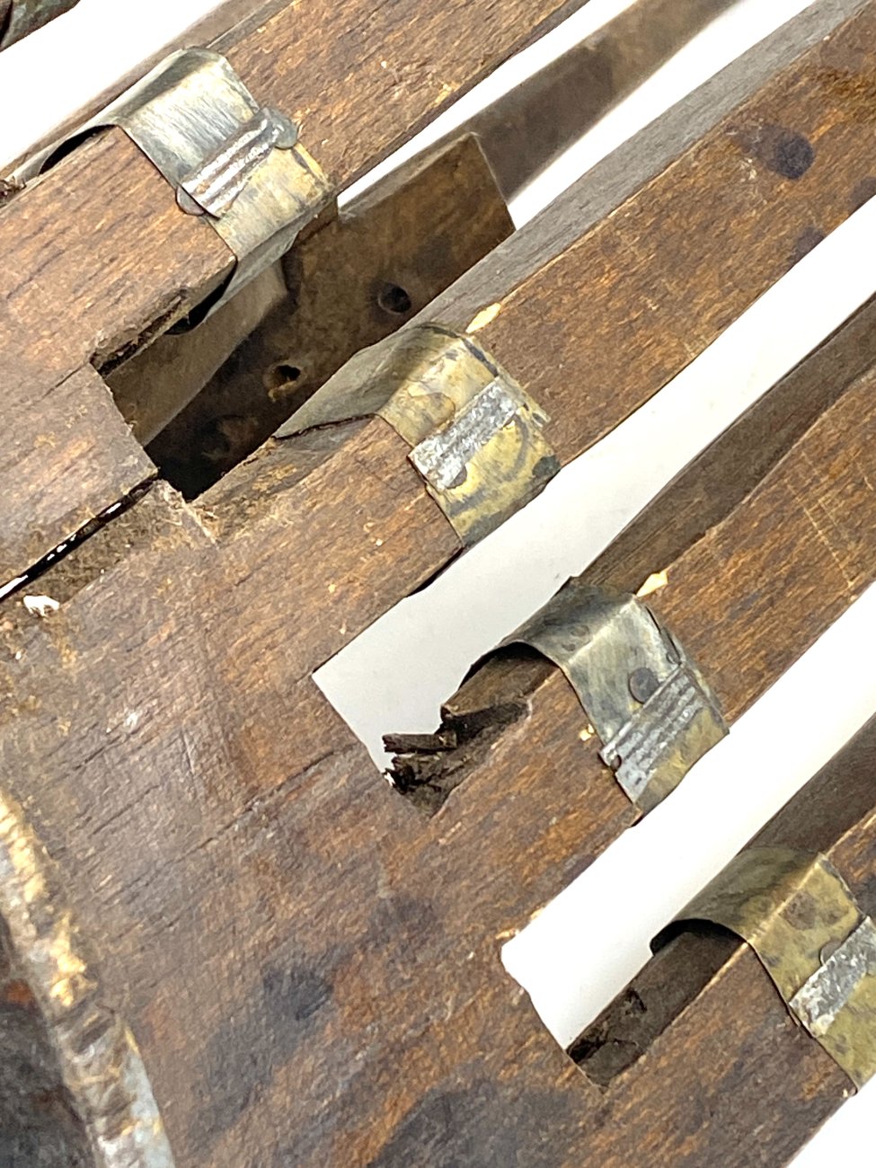 | Papildoma informacija | Per visą paviršių yra pabraižymų, įmušimų, medienos įskilimų. Tikėtina kilmės šalis - Malis. |
