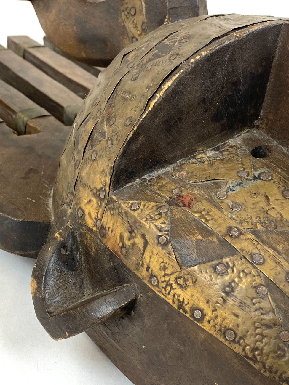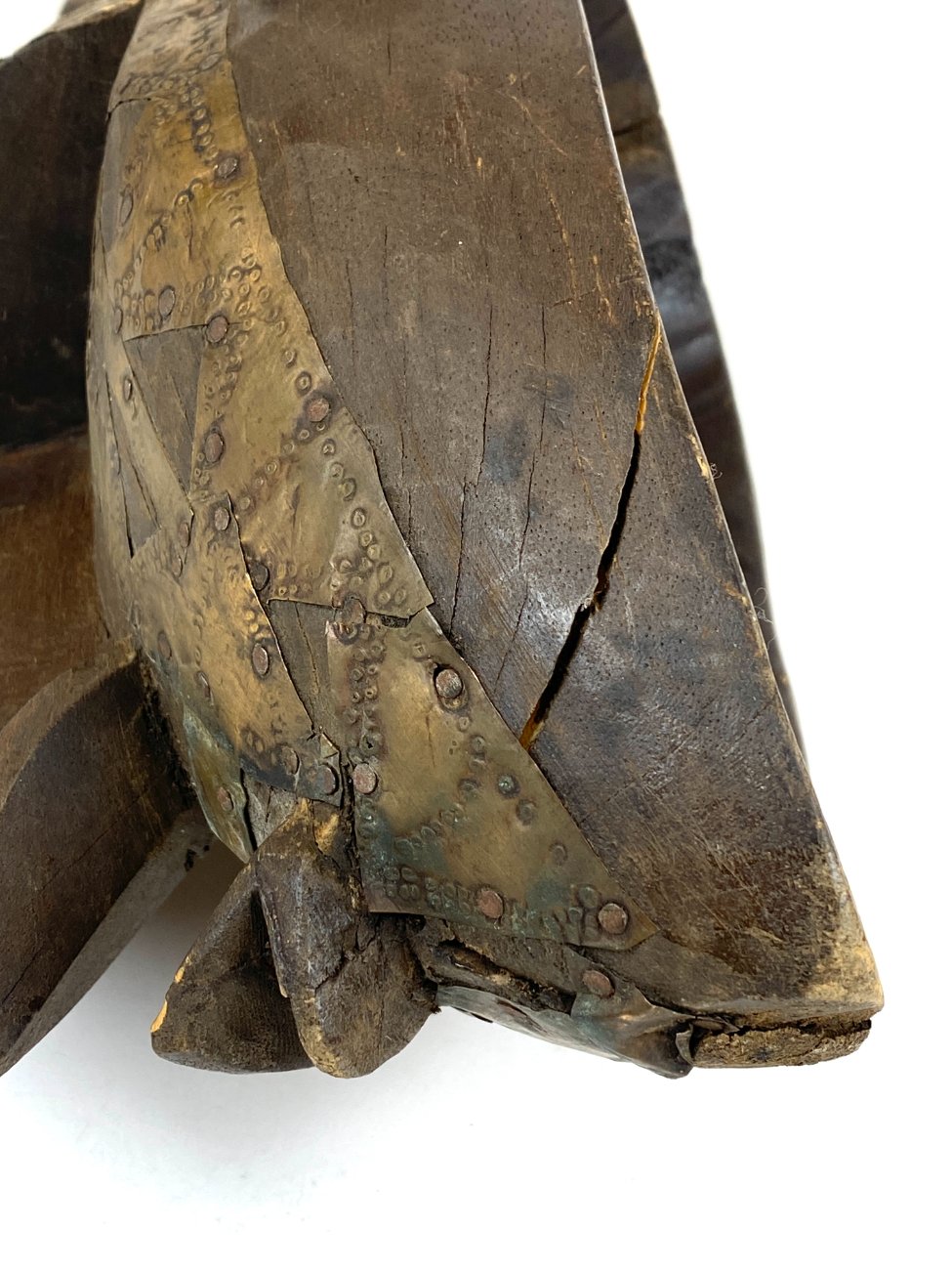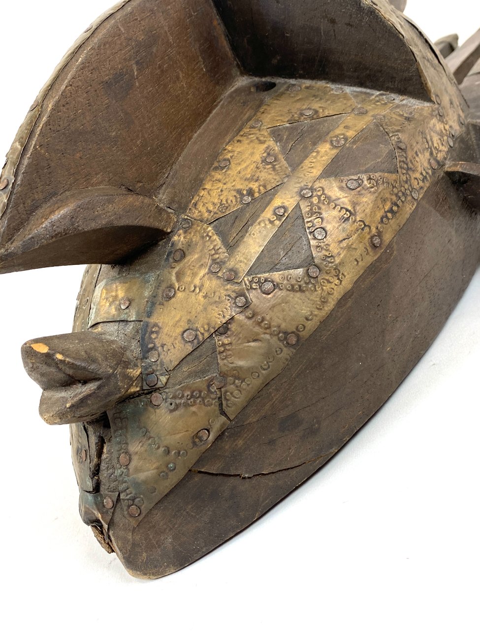 Apeiginė Bamana N’tomo medinė kaukė su žalvario apdailomis 16x22x56 cm
