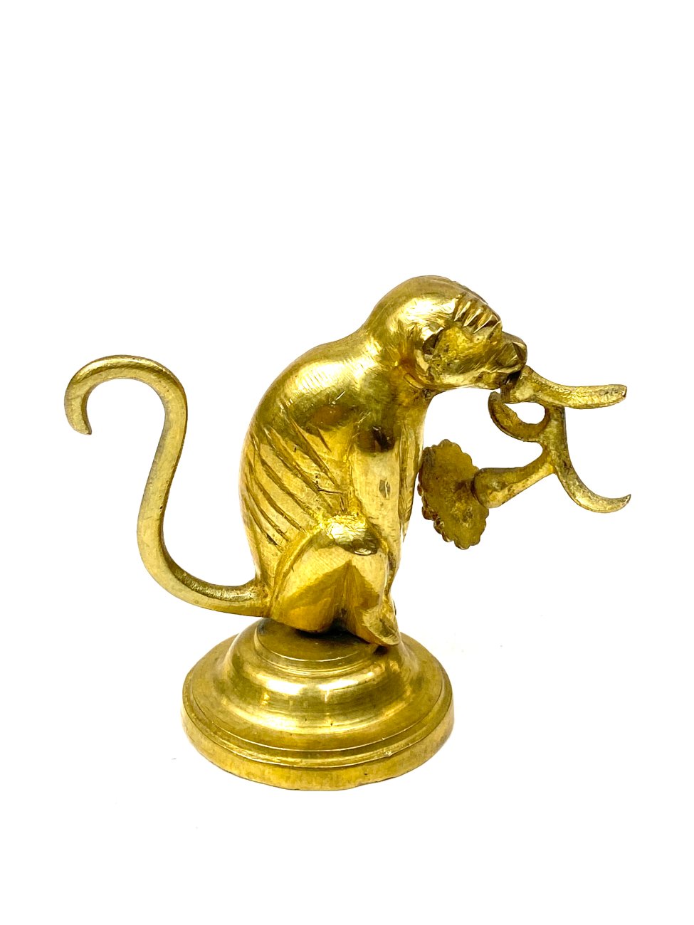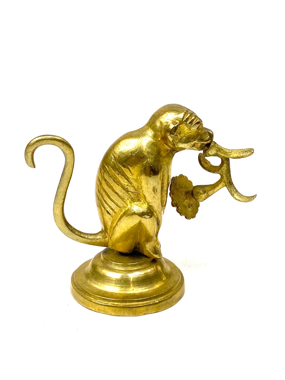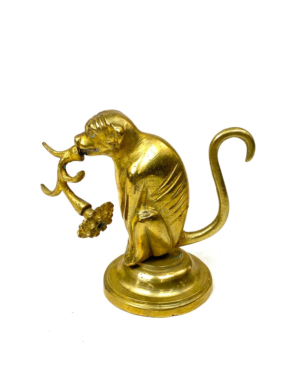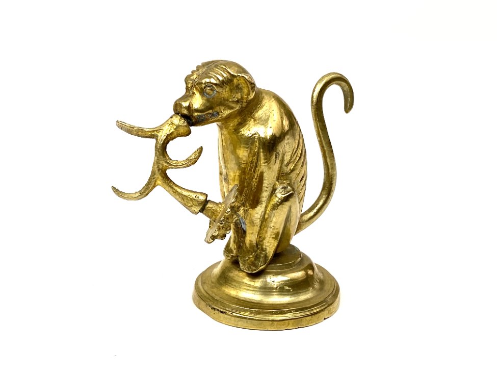 Žalvarinė beždžionės su gėle burnoje statulėlė.