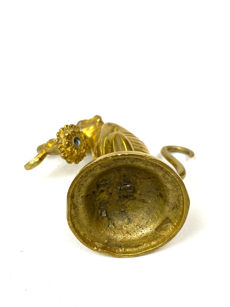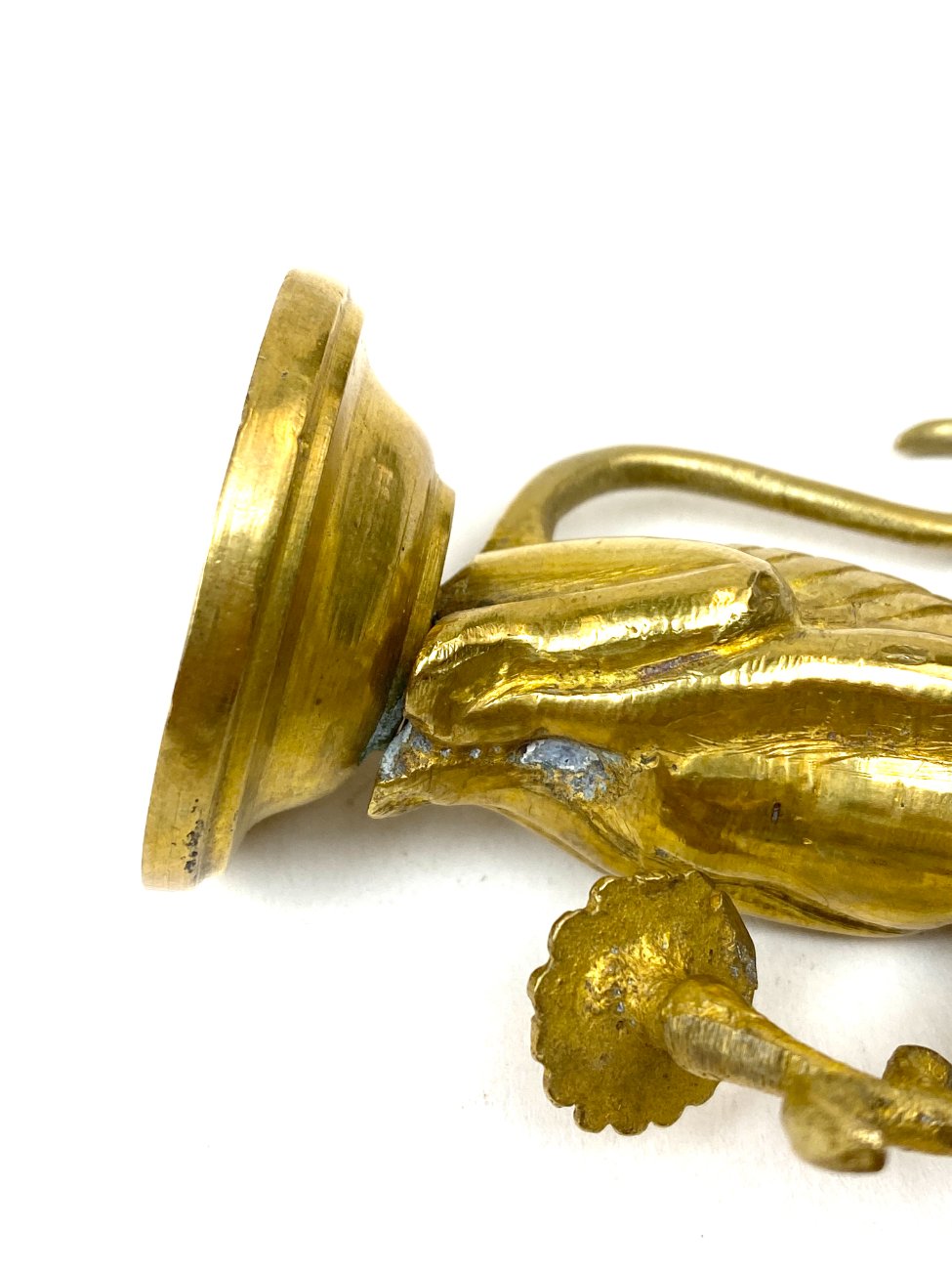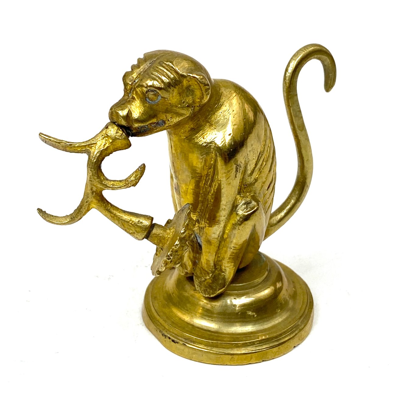 Žalvarinė beždžionės su gėle burnoje statulėlė.