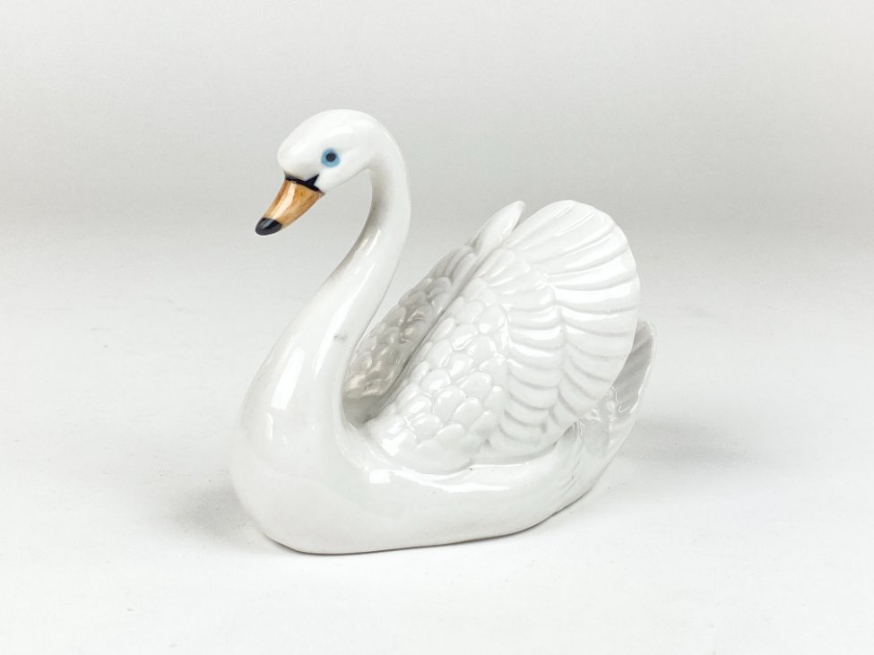 Porcelianinė gulbės statula.