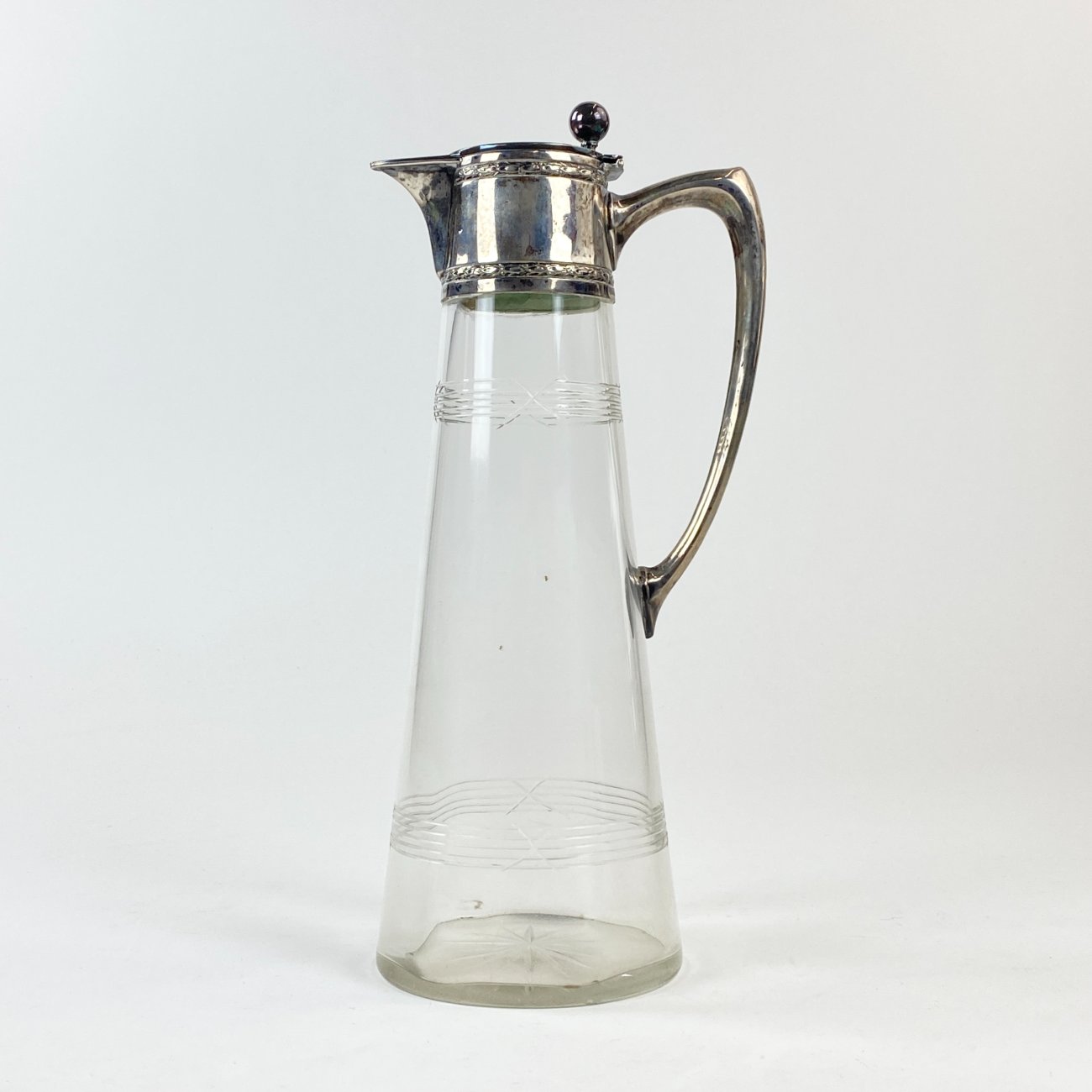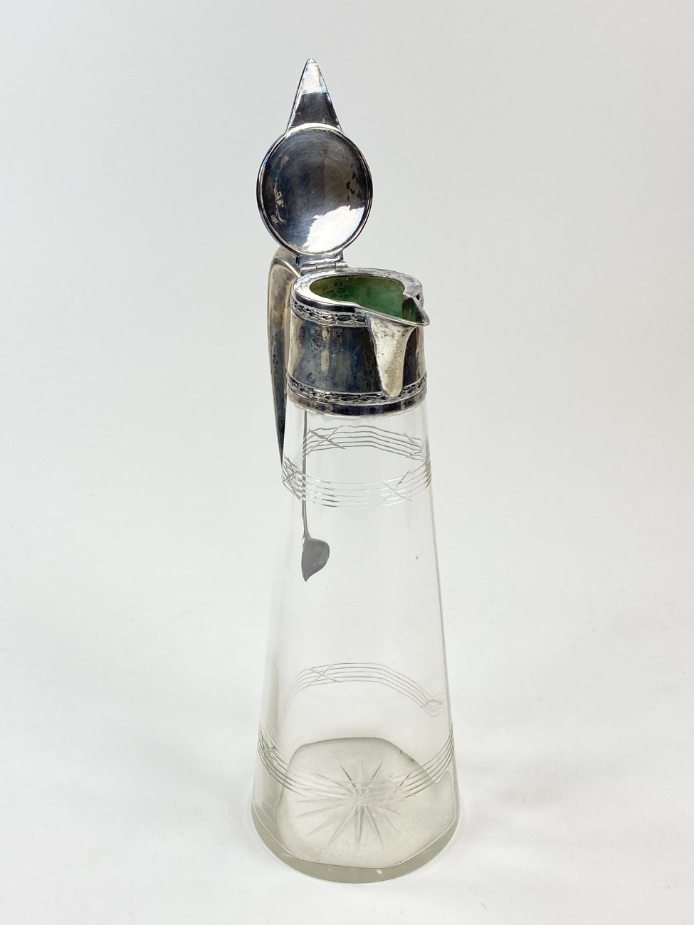 Krištolinis ąsotis su sidabru “Wilhelm Binder”, 800 praba, Vokietija.