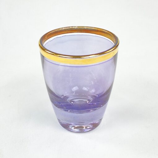 Stiklinė violetinės spalvos taurelė su aukso spalvos apvadu 50 ml.