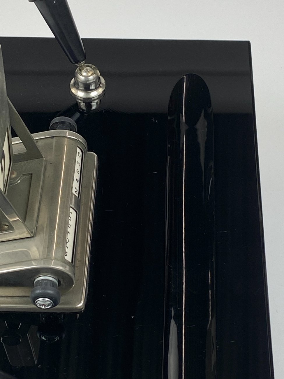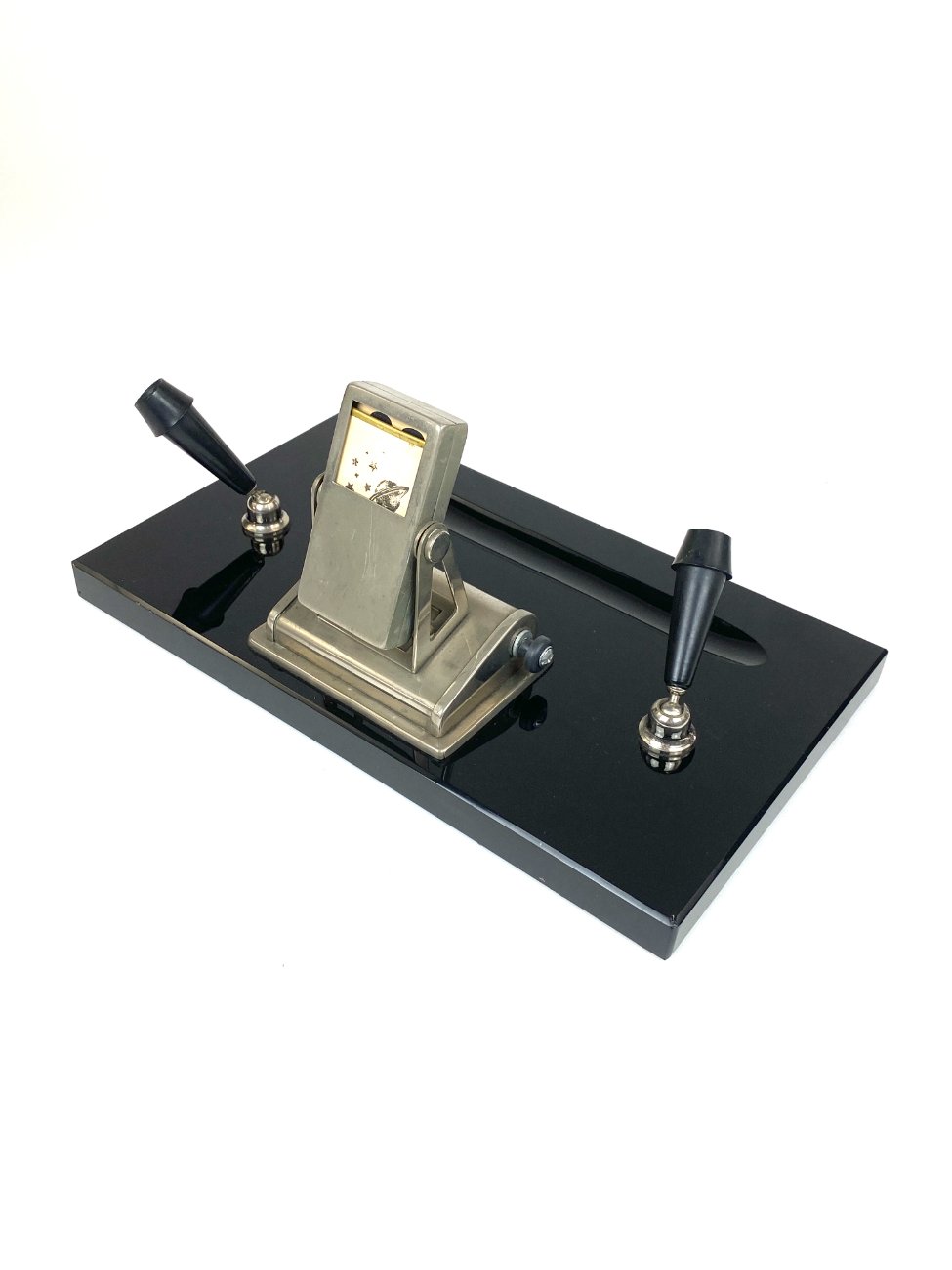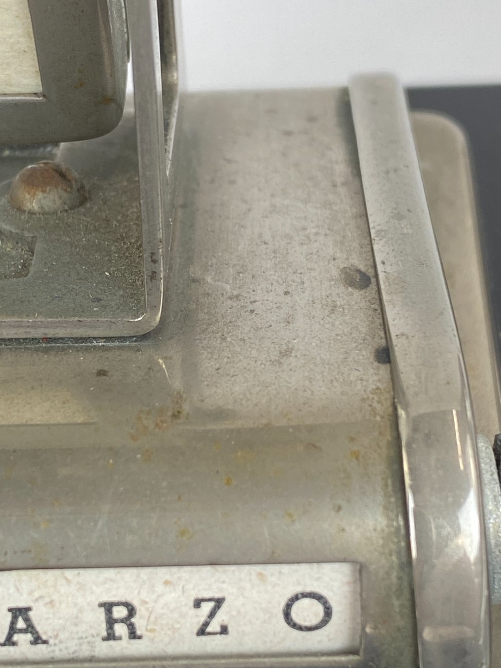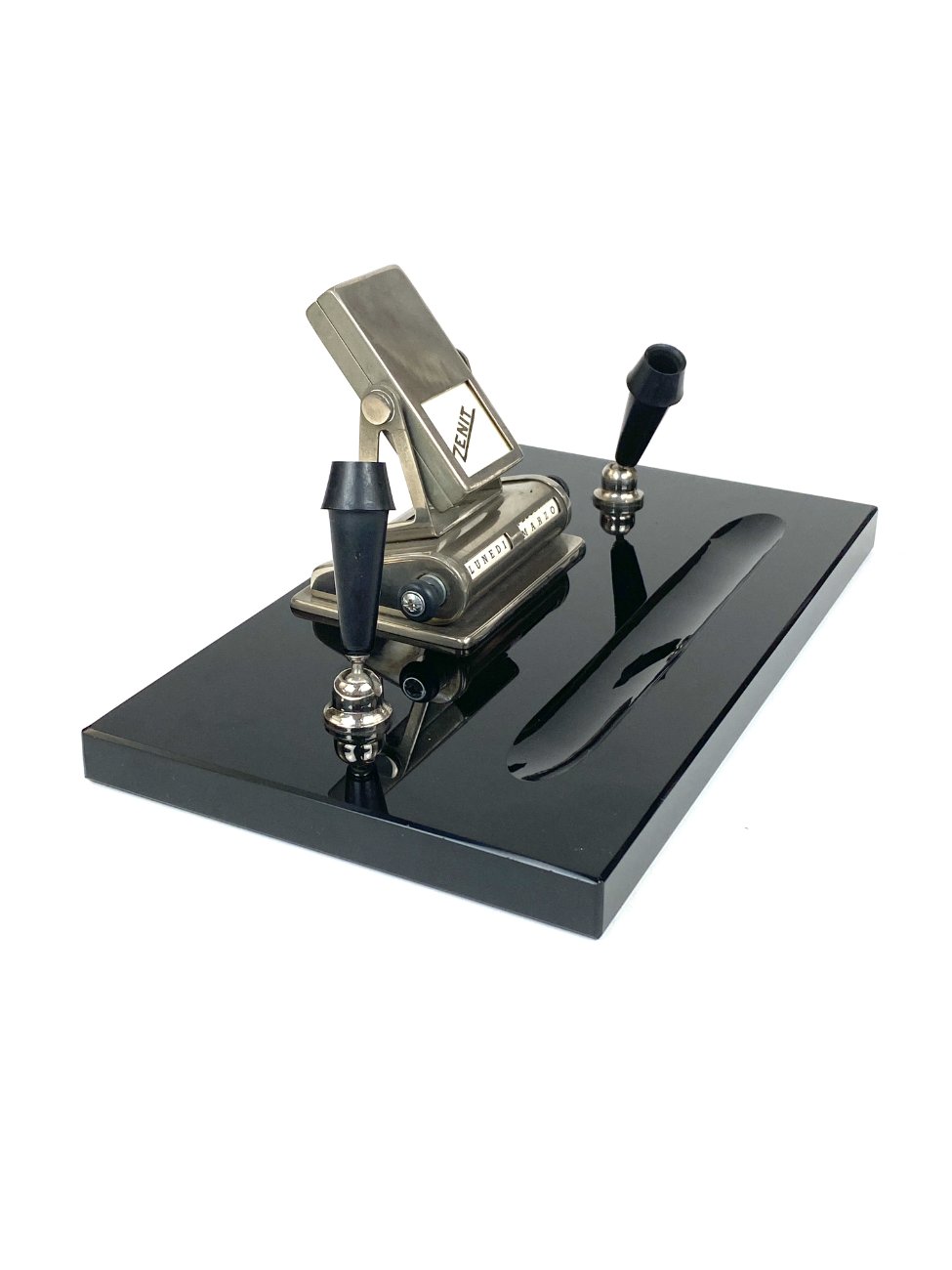 Itališkas vintažinis mechaninis stalinis kalendorius – rašiklių stovas ant akmens pagrindo 18x31x14 cm