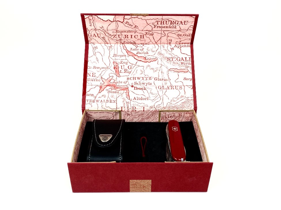 Victorinox Handyman daugiafunkcio peilio, odinio dėklo ir dirželio komplektas kartoninėje dėžutėje.