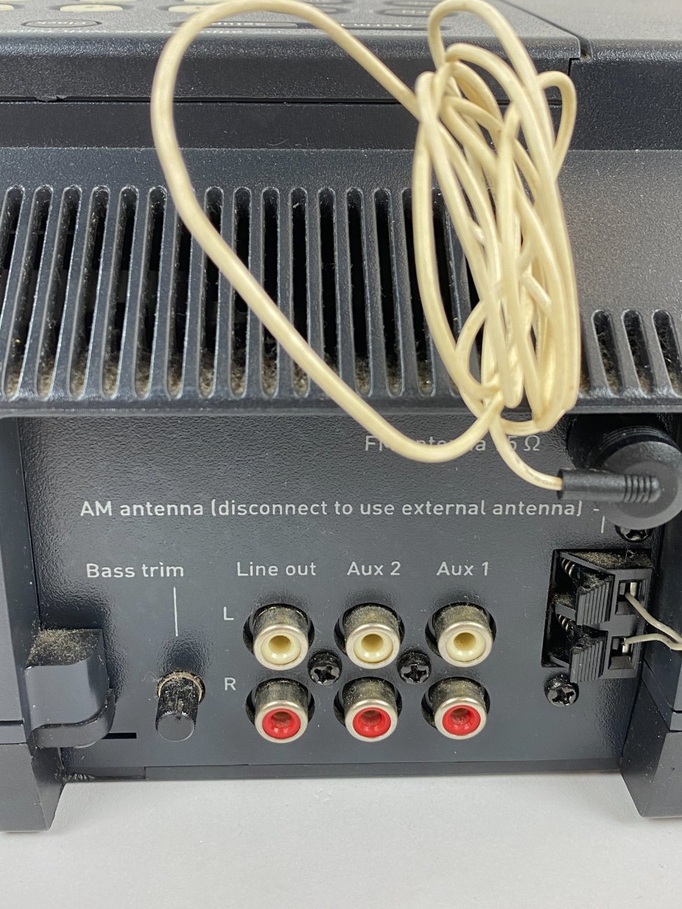 | Papildoma informacija | Įrenginį sudaro stiprintuvas, CD grotuvas su CD, CD R, CD RW, MP3 ir WMA palaikymu, AM/FM radijas, žadintuvas su garsiakalbiais., Viskas veikia. Yra išorės pabraižymų. |