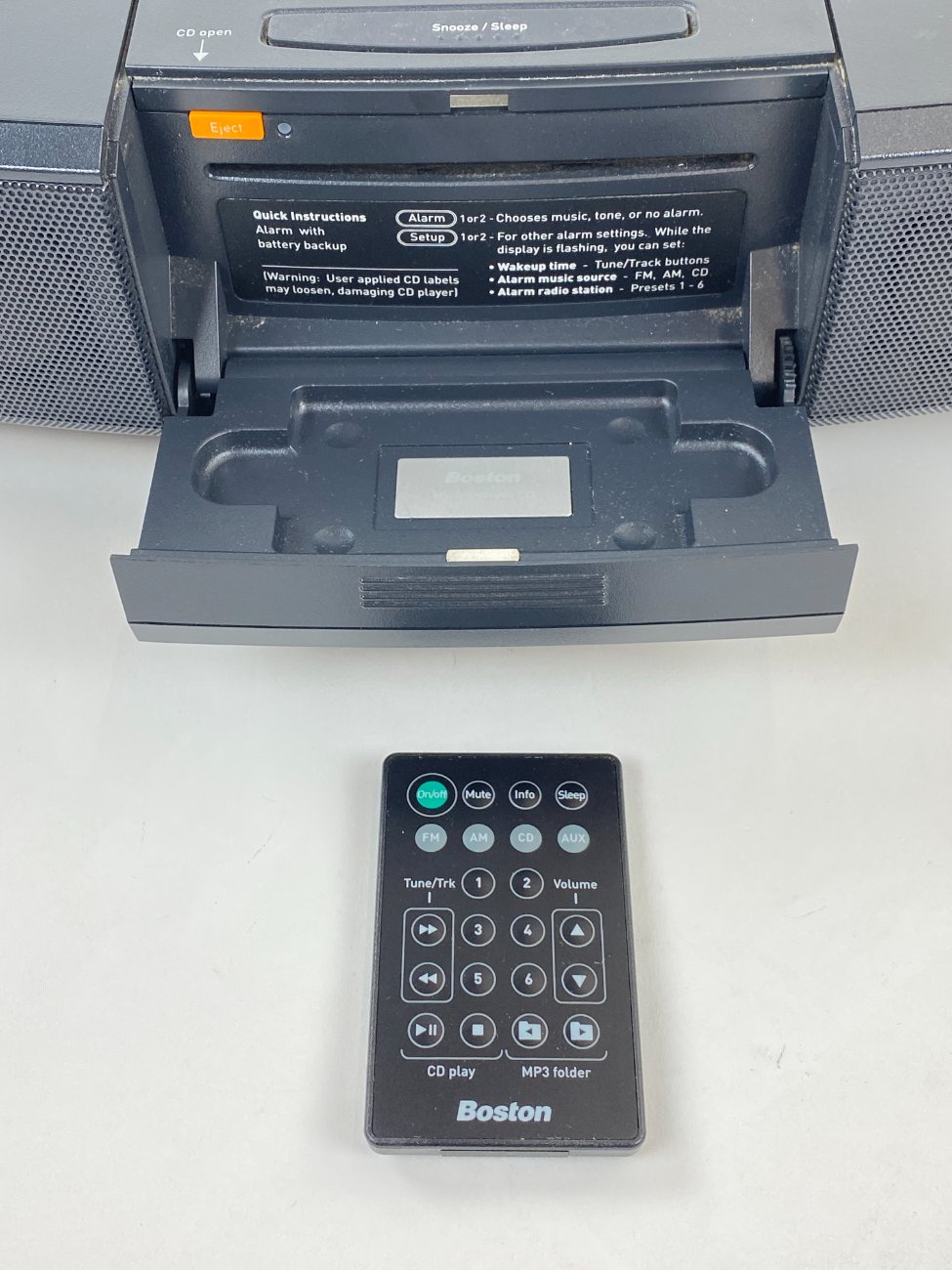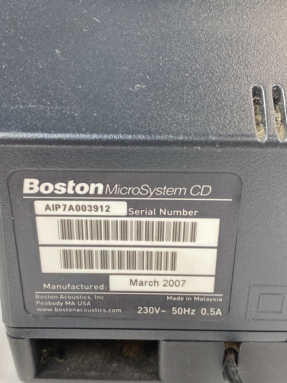 Boston Acoustics MicroSystem CD. Įrenginį sudaro stiprintuvas, CD grotuvas su CD, CD R, CD RW, MP3 ir WMA palaikymu, AM/FM radijas, žadintuvas su garsiakalbiais.