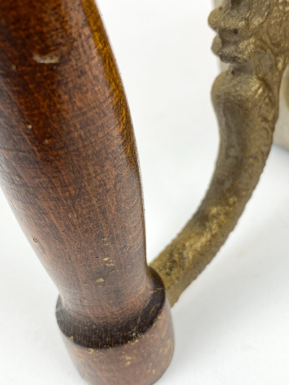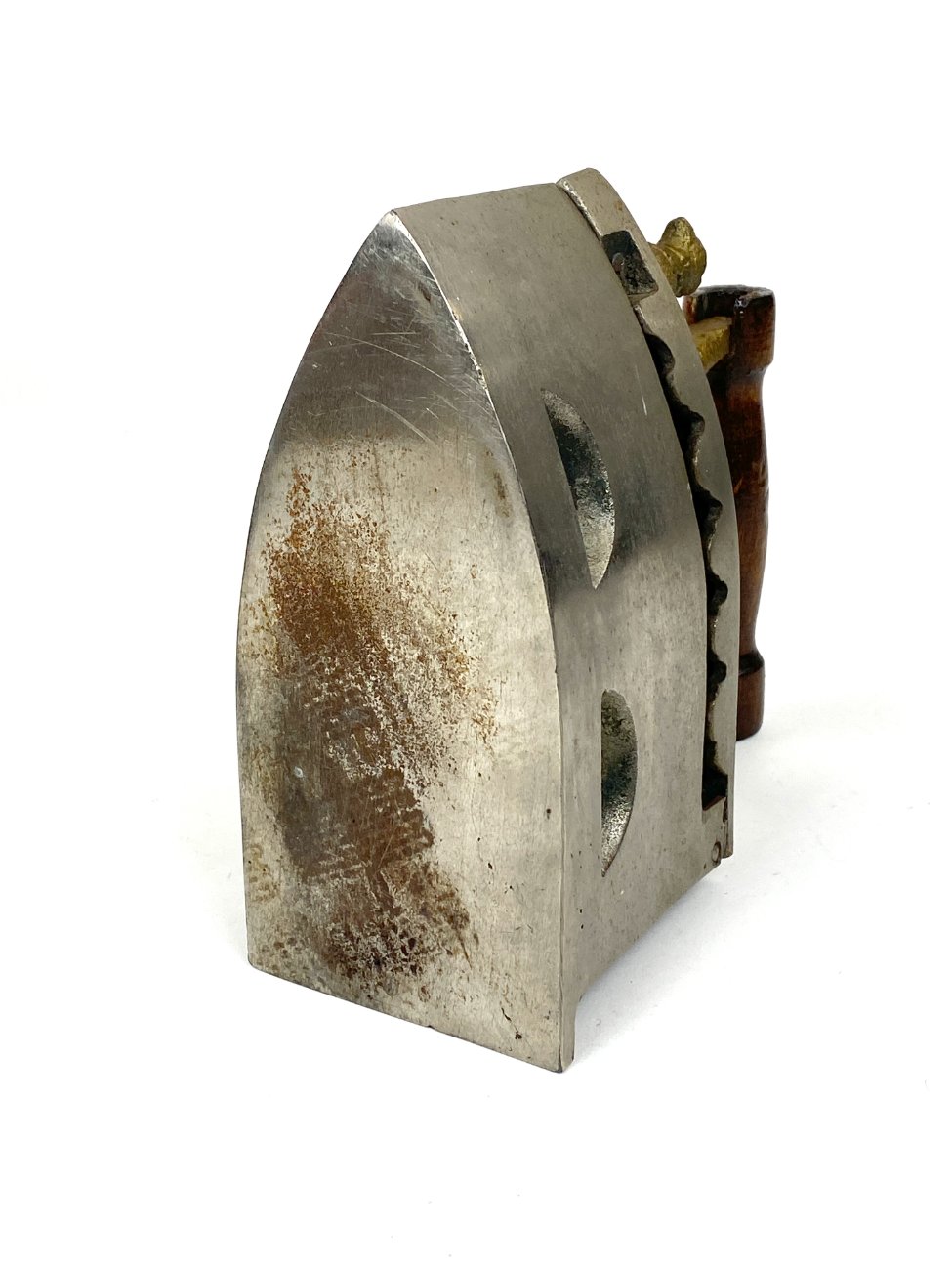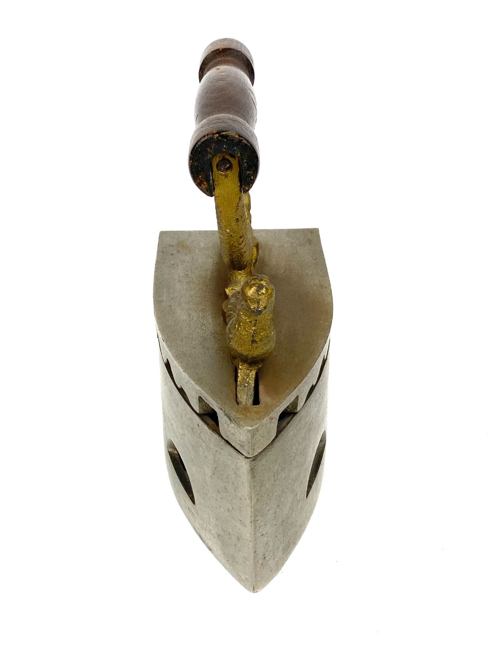 Senovinis metalinis lygintuvas su medine rankena ir gaidžio figūrėle 19,5×9,5×20,5 cm