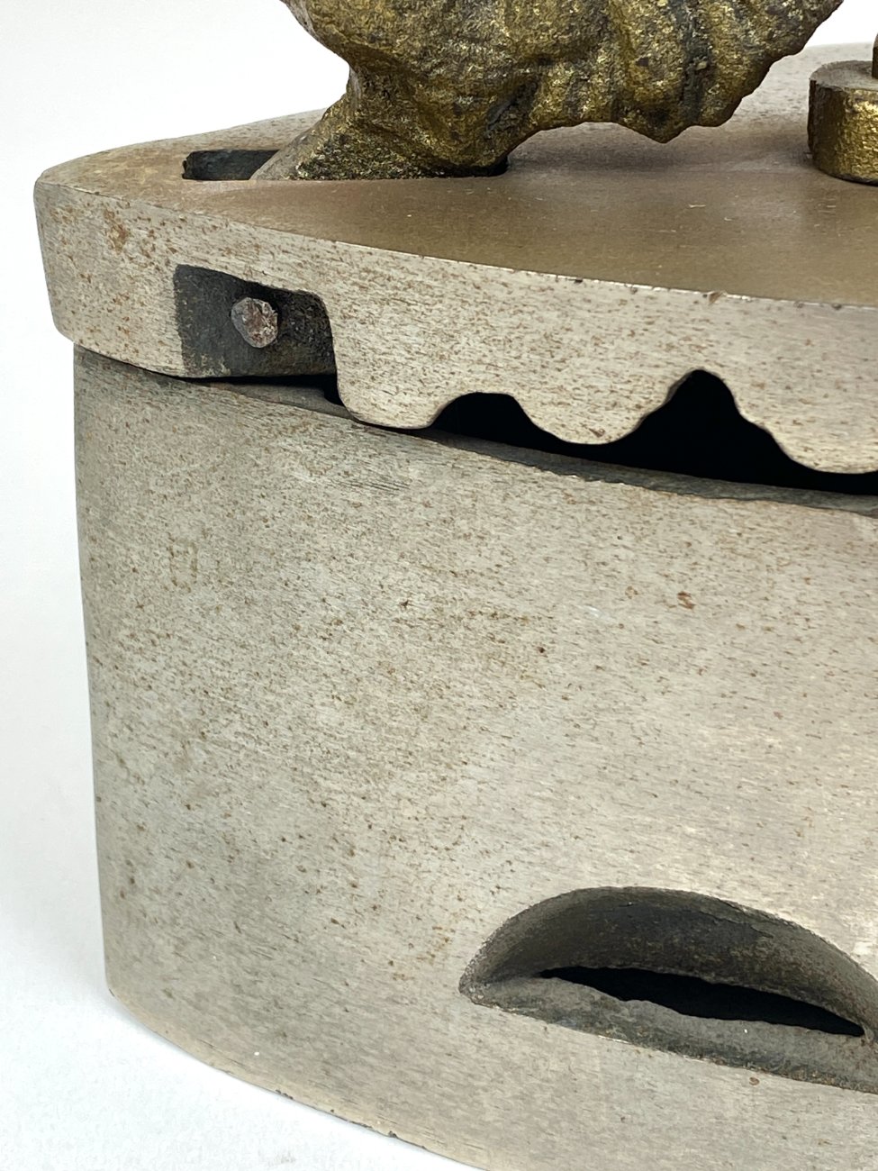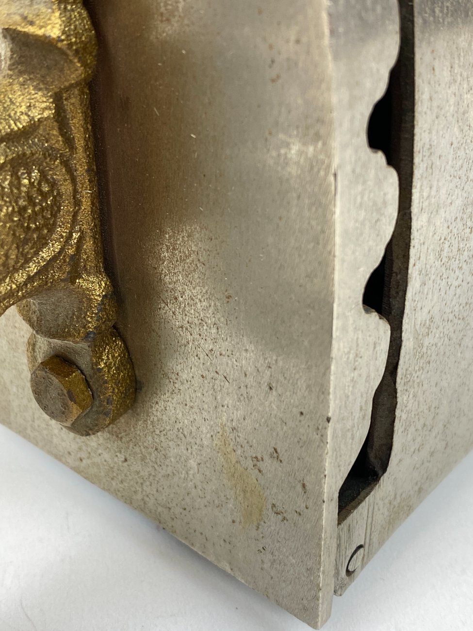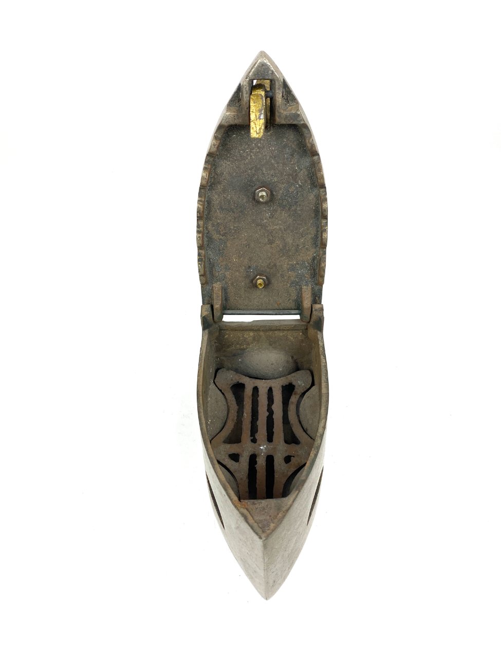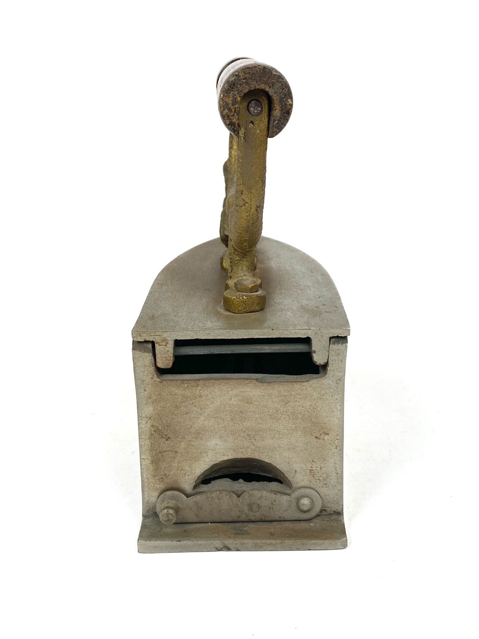 Senovinis metalinis lygintuvas su medine rankena ir gaidžio figūrėle 19,5×9,5×20,5 cm