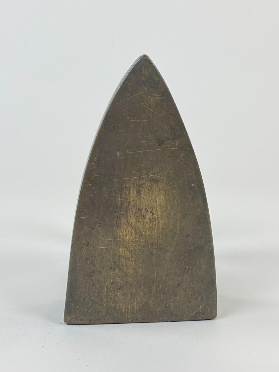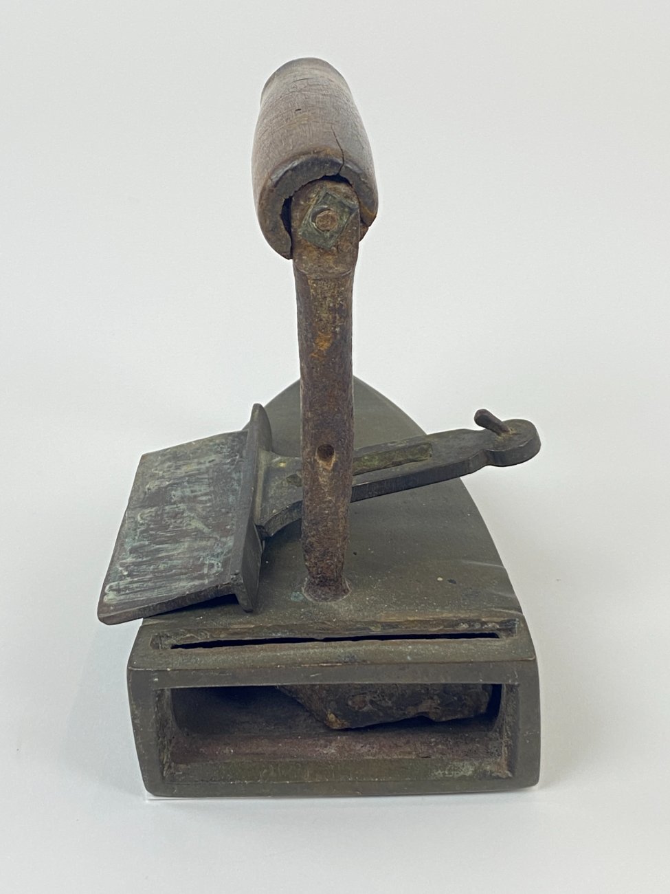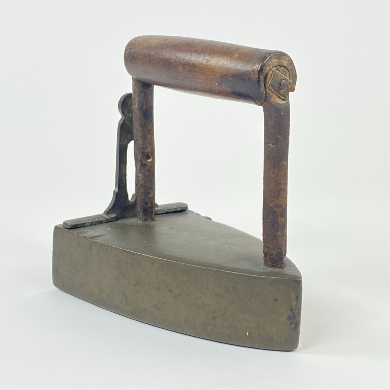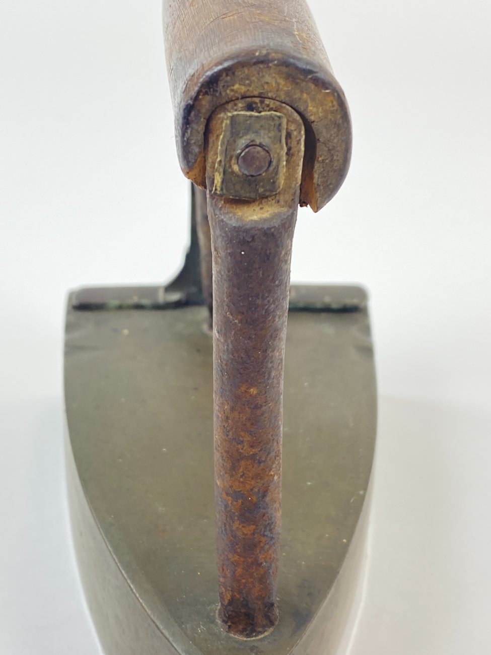 Senovinis žalvario ir metalo lygintuvas medine rankena 16,5x10x16,5 cm