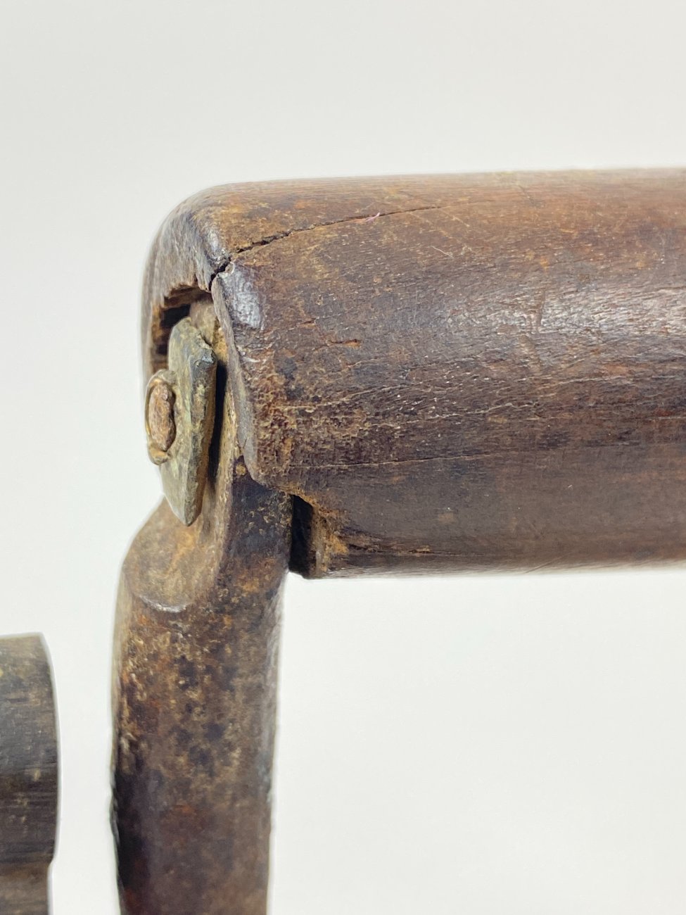 | Papildoma informacija | Yra rankenos medienos įtrūkimų. Matomi paviršiaus pabraižymai ir rūdys ant metalo detalių. |