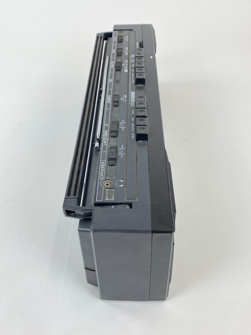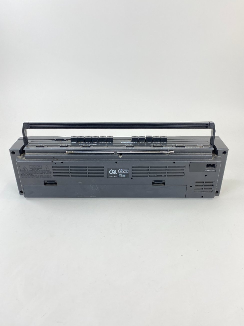 | Papildoma informacija | Aukštis pakėlus rankeną 18 cm. Radijas veikia, bet magnetofono mechaniką reikia tvarkyti, nėra maitinimo laido. Yra paviršiaus pabraižymų, dėmių. |