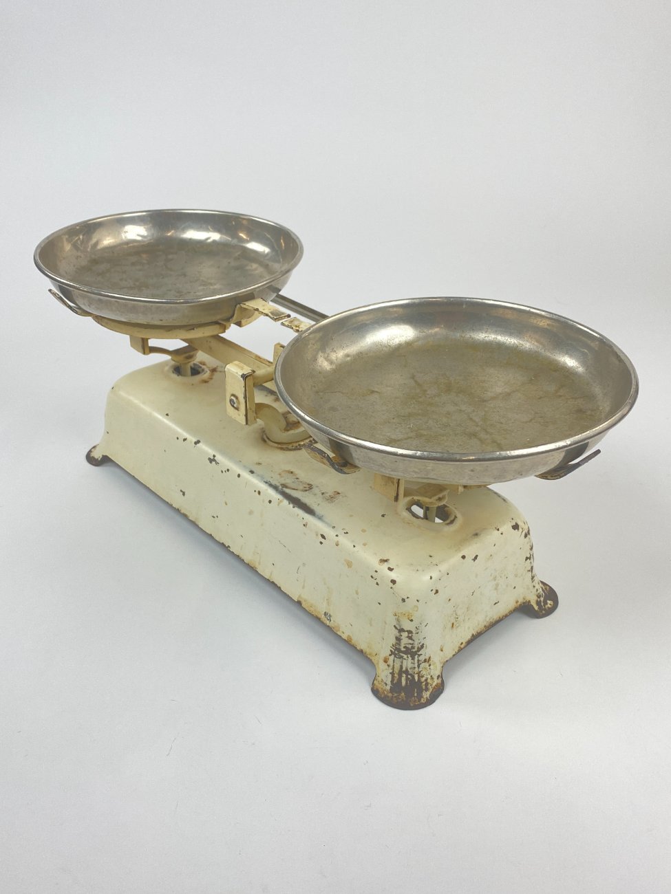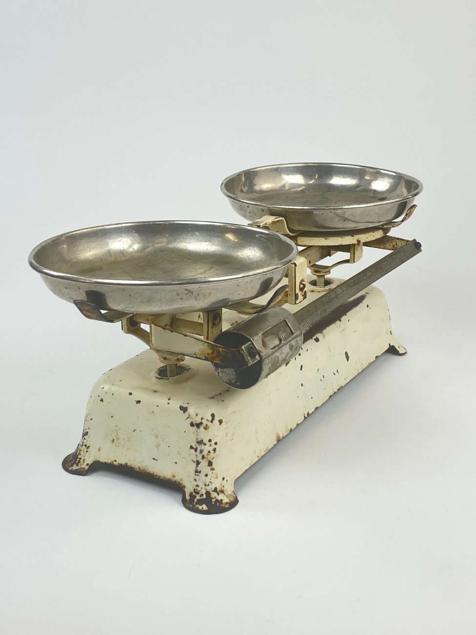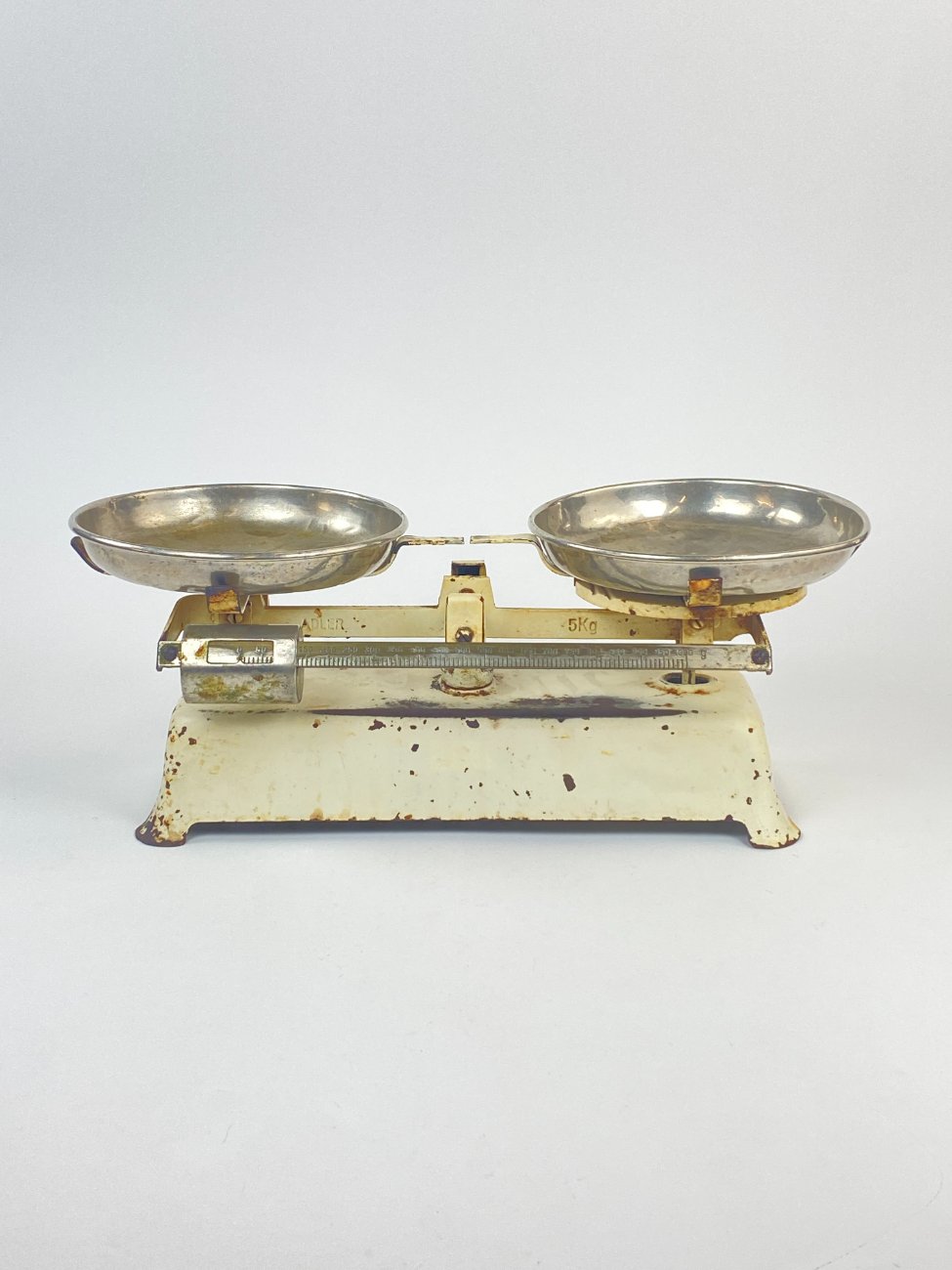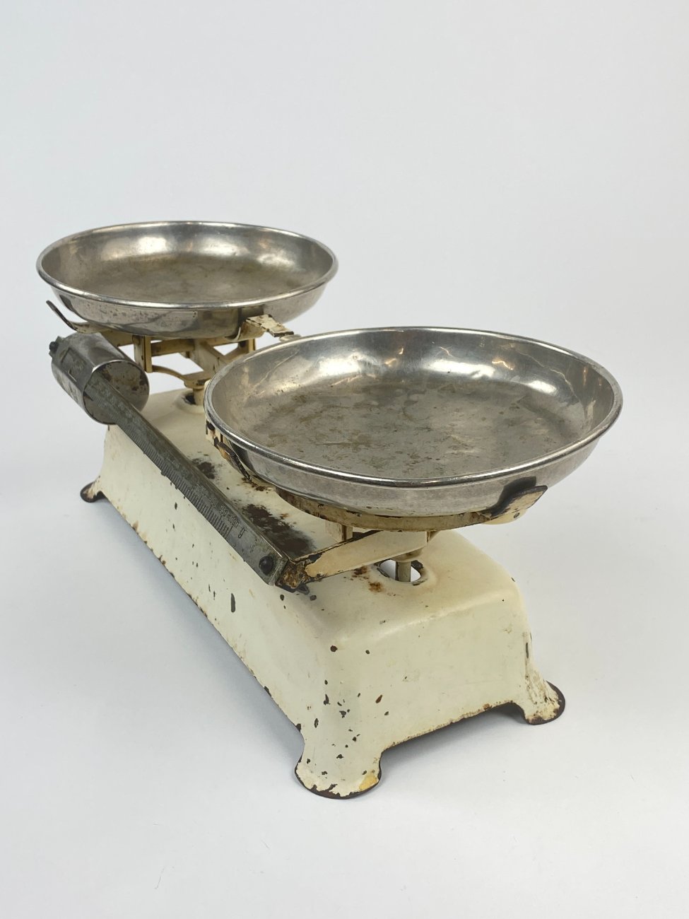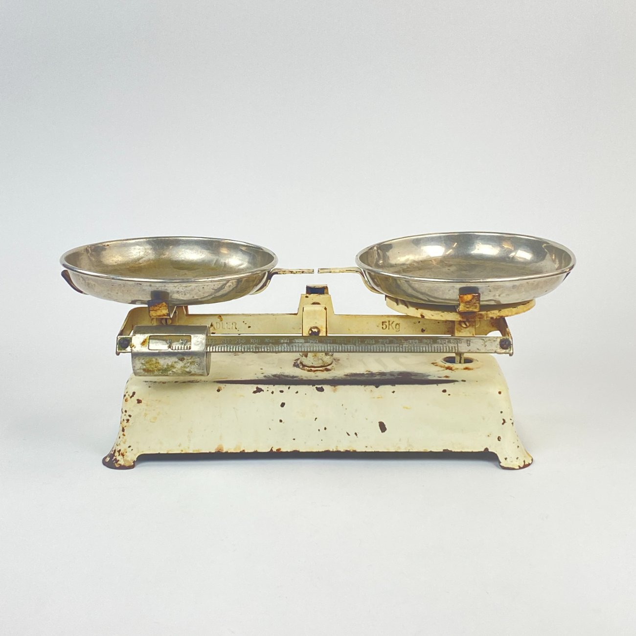 Vintažinės emaliuoto metalo svarstyklės “Adler”.