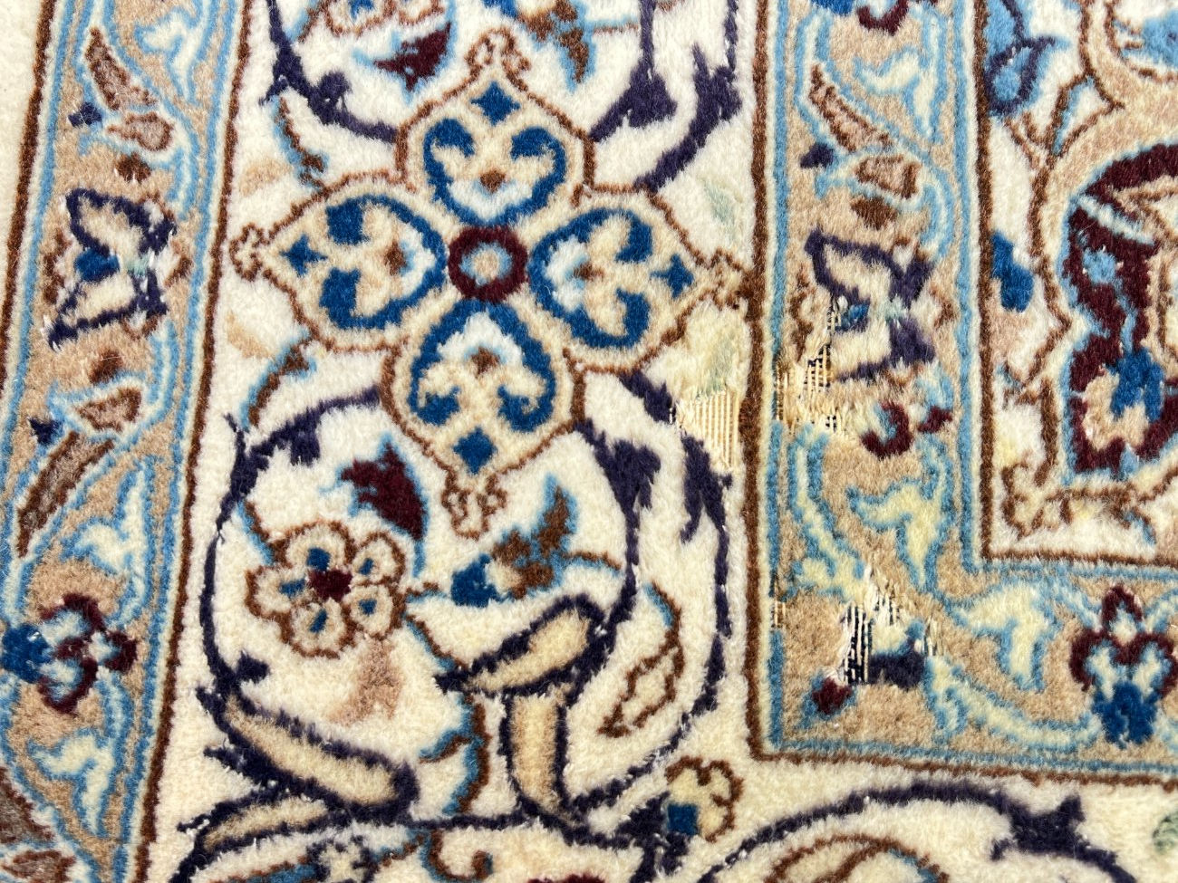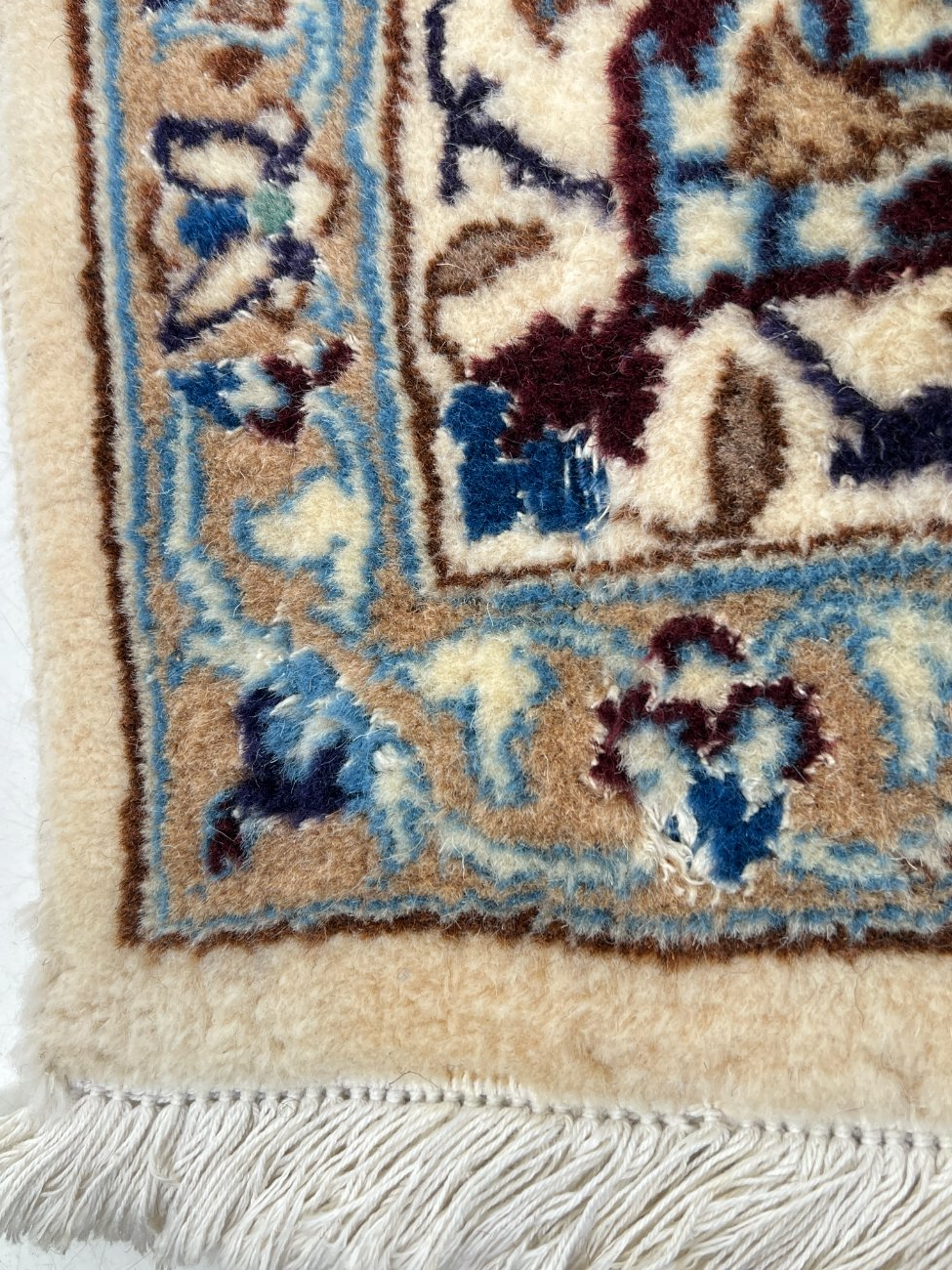 | Papildoma informacija | kraštuose ir prie rėmelio trūksta vilnos, yra dėmių |