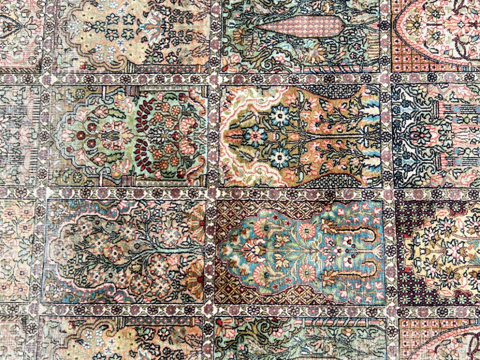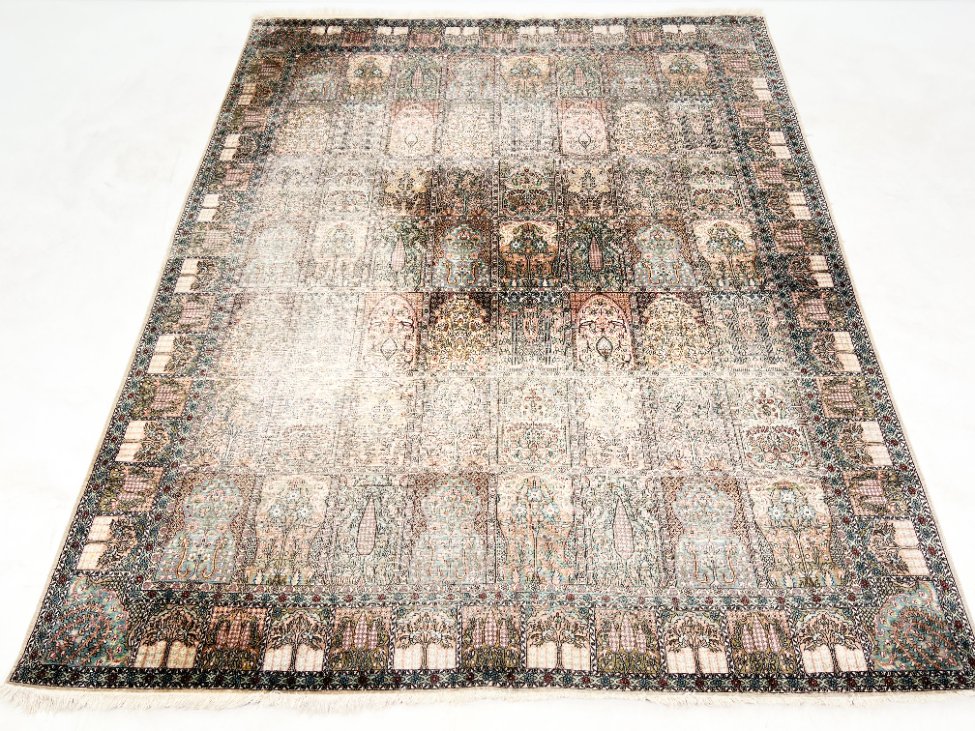 Rankų darbo kilimas iš šilko ir medvilnės 313x241x0,3 cm