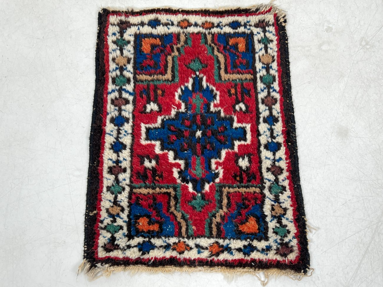 | Papildoma informacija | Sudėvėti kutai. Vietomis padėvėtos kraštinės. Vietomis trūksta vilnos. |