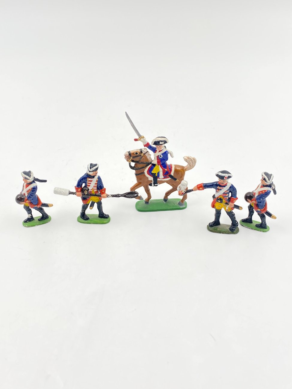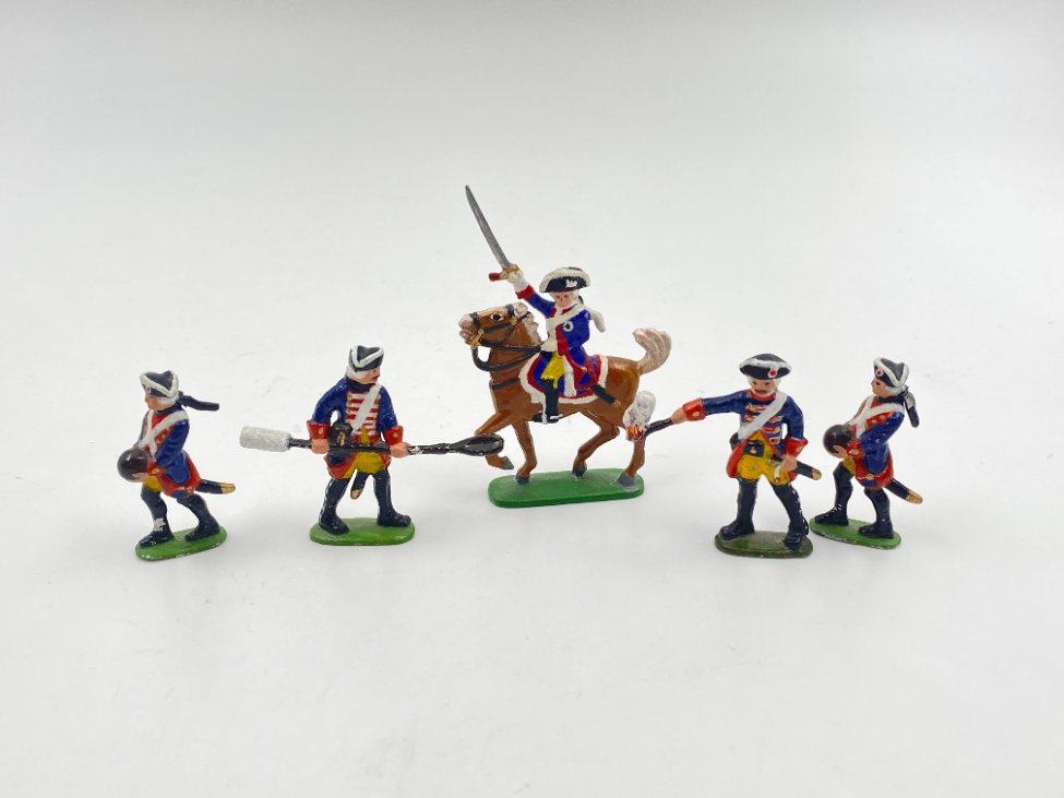 | Produktą sudaro | 1 vnt. kareivis ant žirgo 1,5x5x8, 1 vnt. kareivis su deglu 1x4,5x4,5 cm, 1 vnt. kareivis su ramrodu 1x5,5x5 cm, 2 vnt. kareivių su sviediniais 1x2,5x4,5 cm |