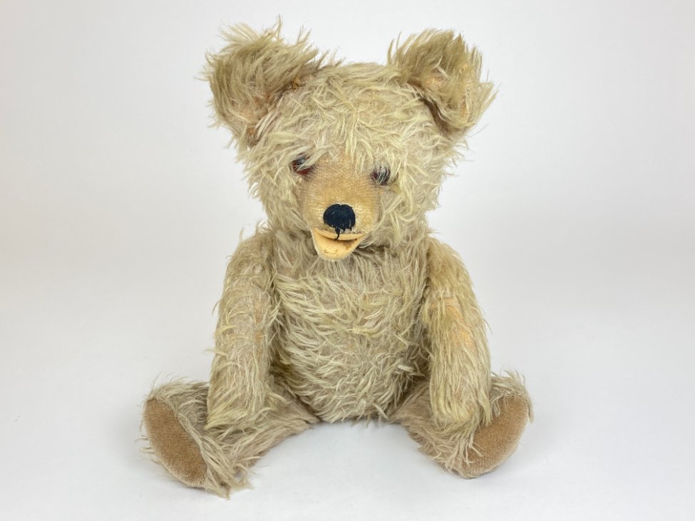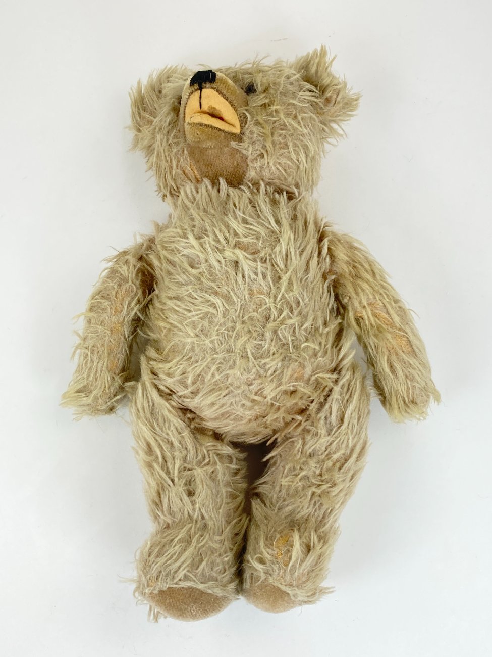 Vintažinis pliušinis meškinas reguliuojamomis galūnėmis.