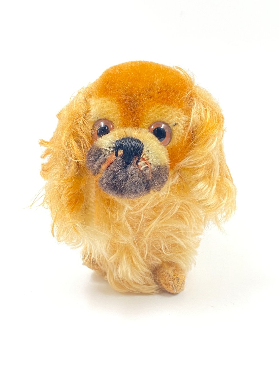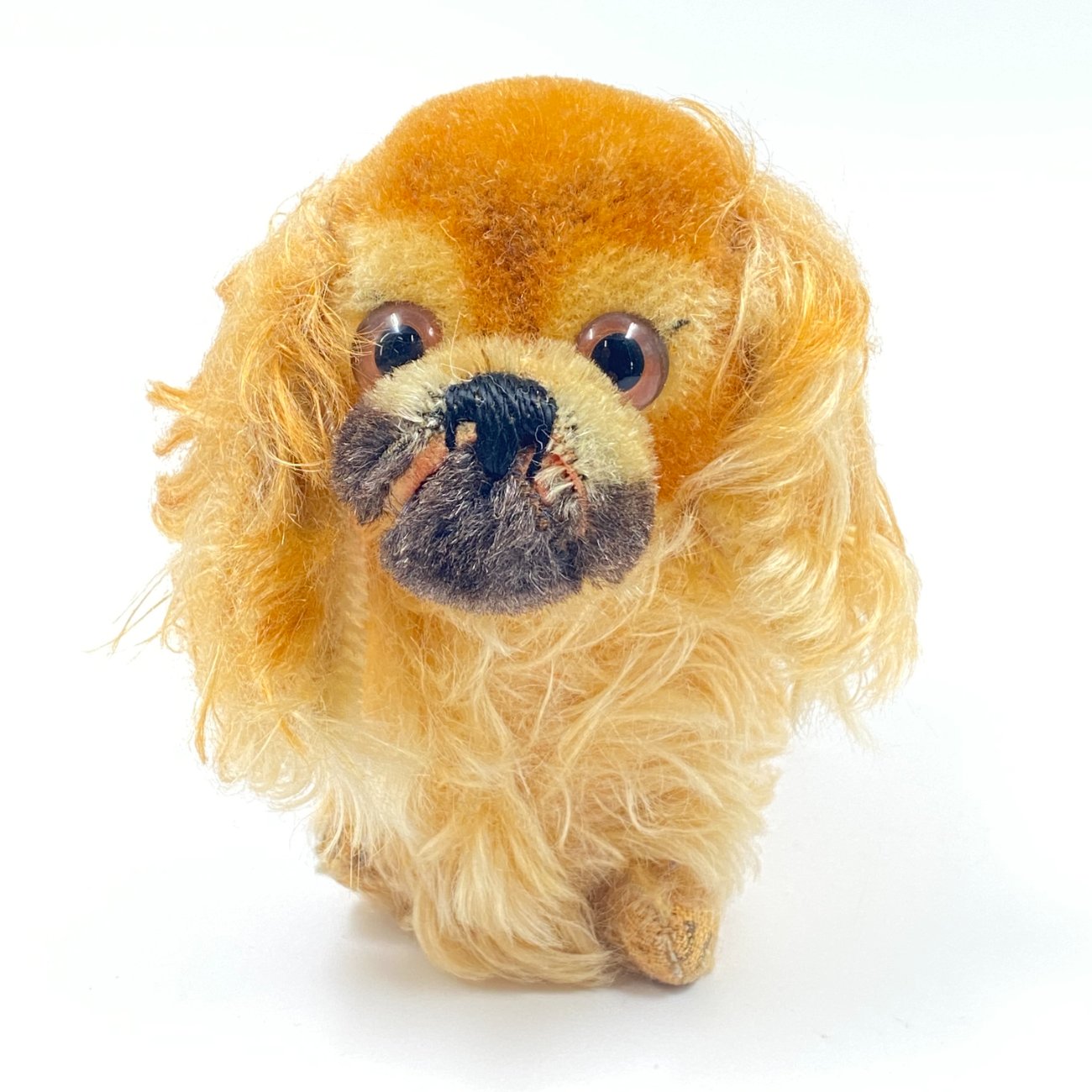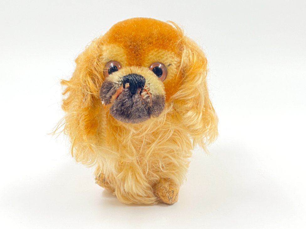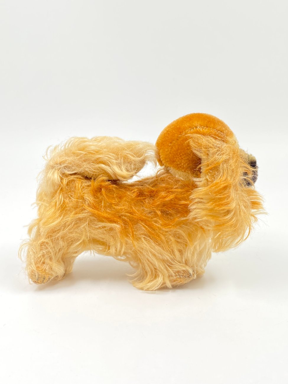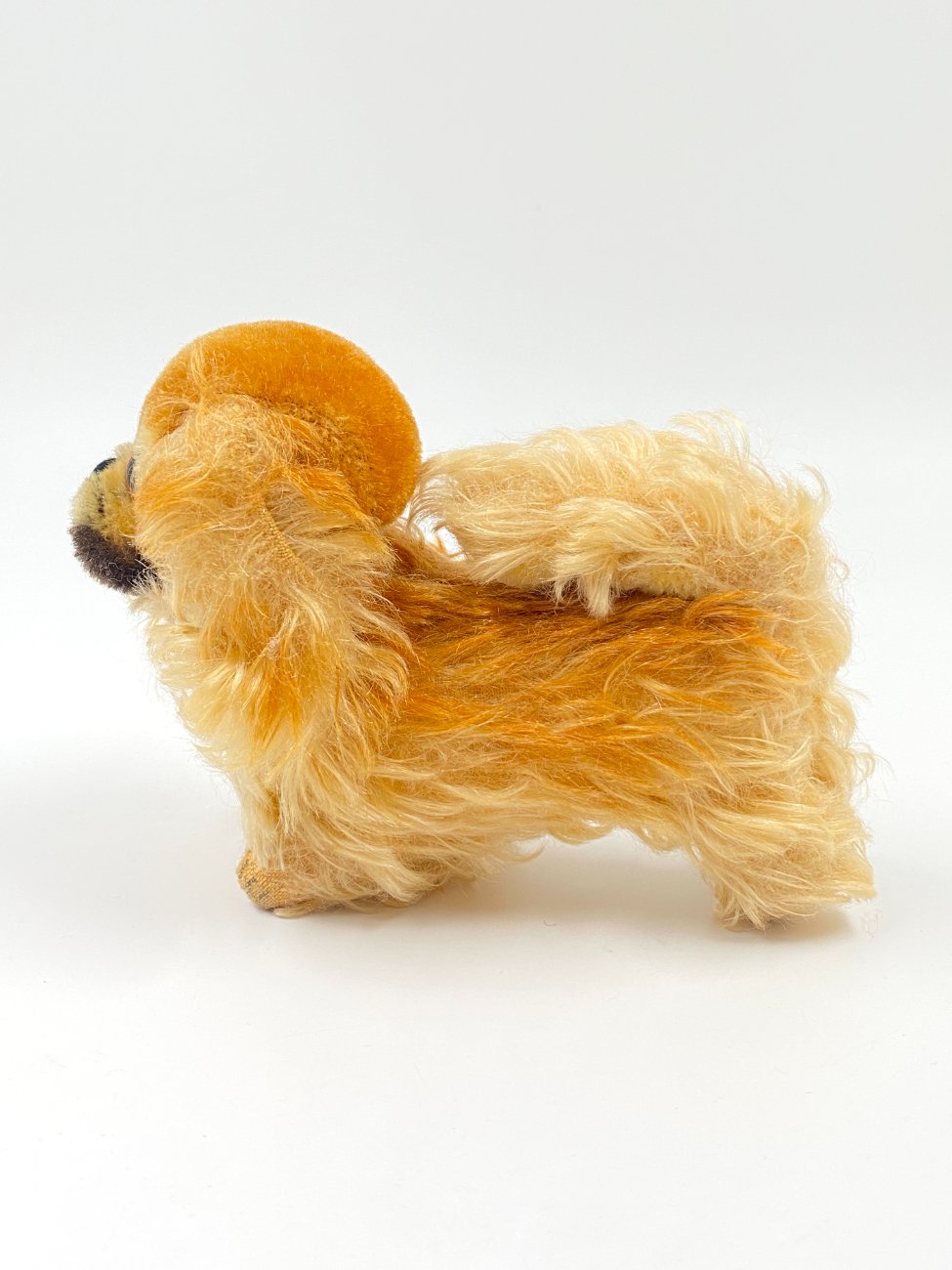 Vintažinis “Steiff” pliušinis pekinų veislės šuo.