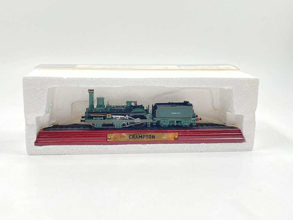 Atlas Editions lokomotyvo modeliukas CRAMPTON dėžutėje.