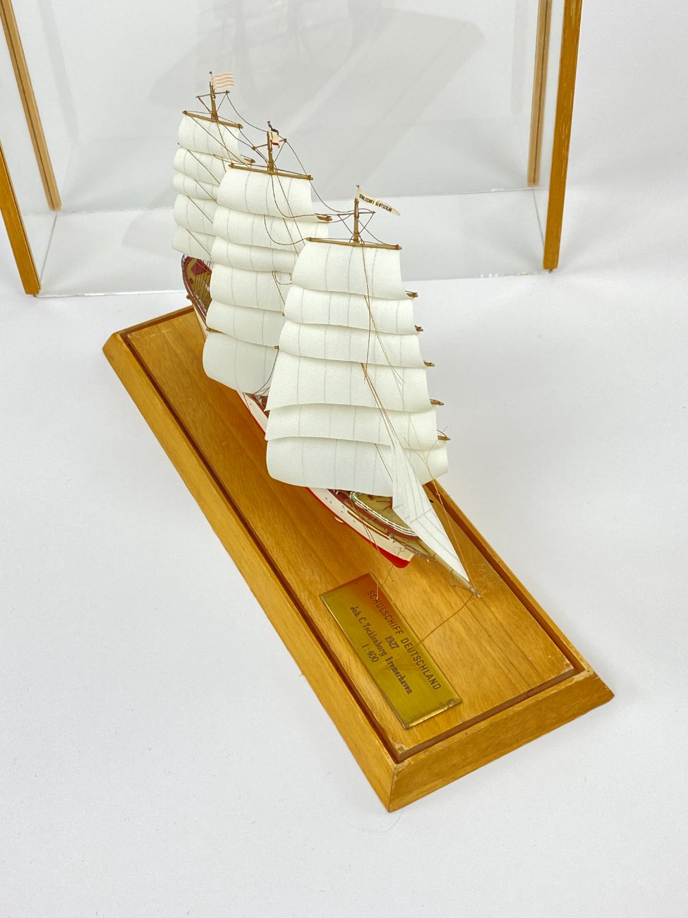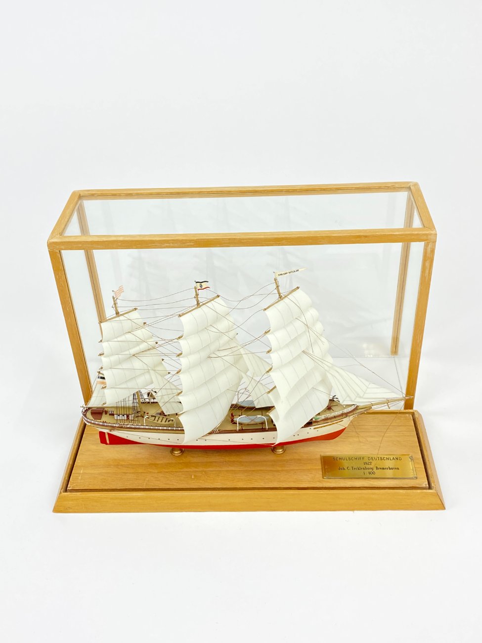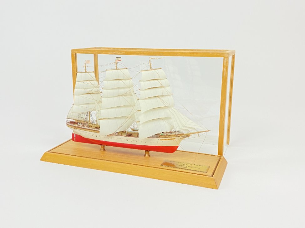 Schulschiff Deutschland 1927 laivo modeliukas 1:400 su stikliniu gaubtu.