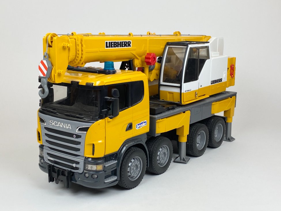 Žaislinis vokiškas “Bruder” kranas Scania Liebherr 1:16.