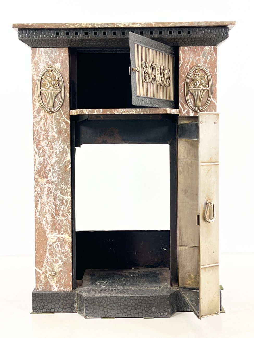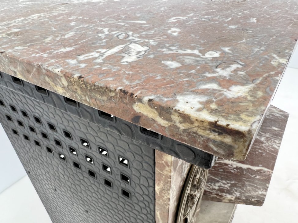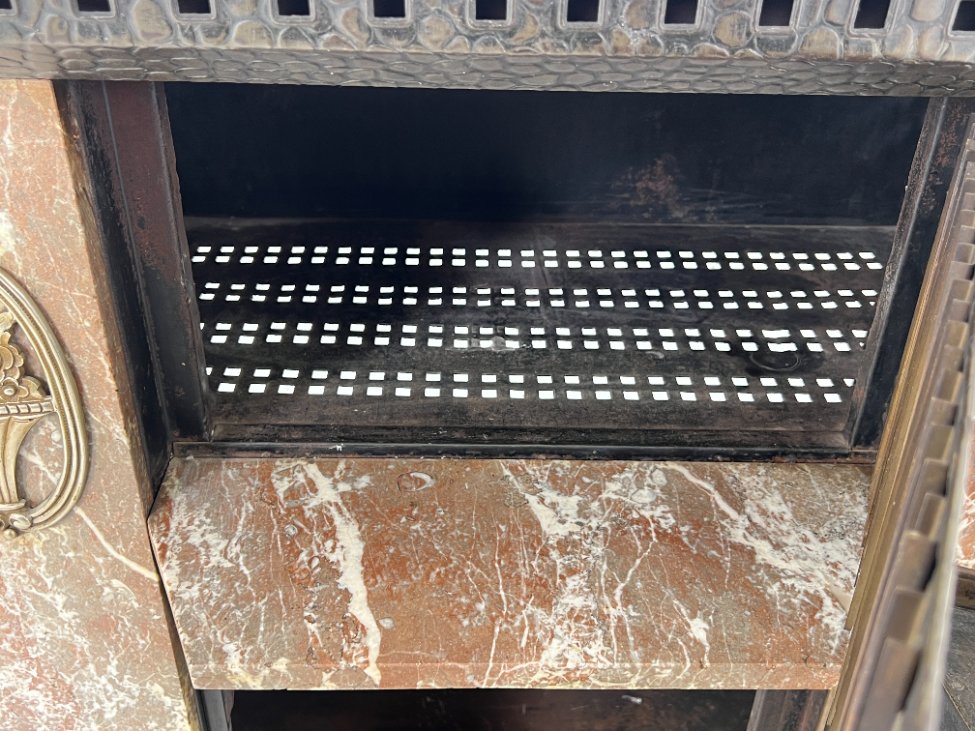 Art Nouveau stiliaus židinio apdaila iš marmuro ir metalo 51x93x125 cm